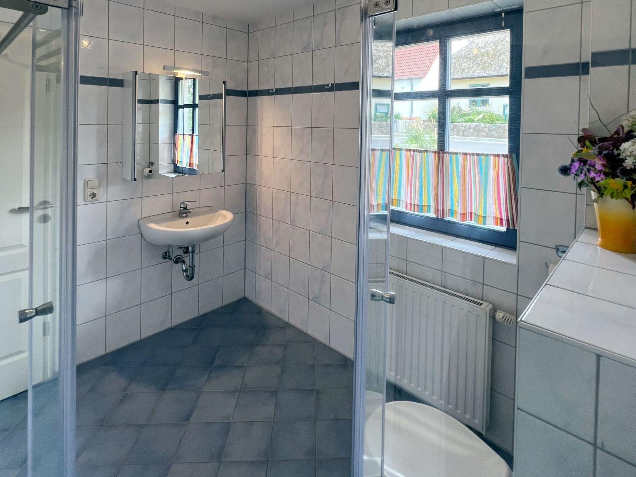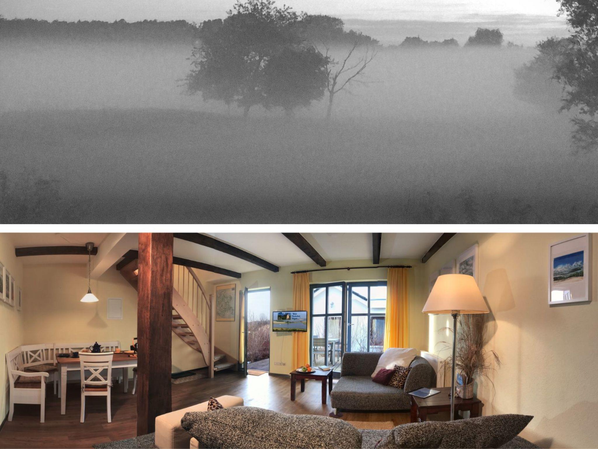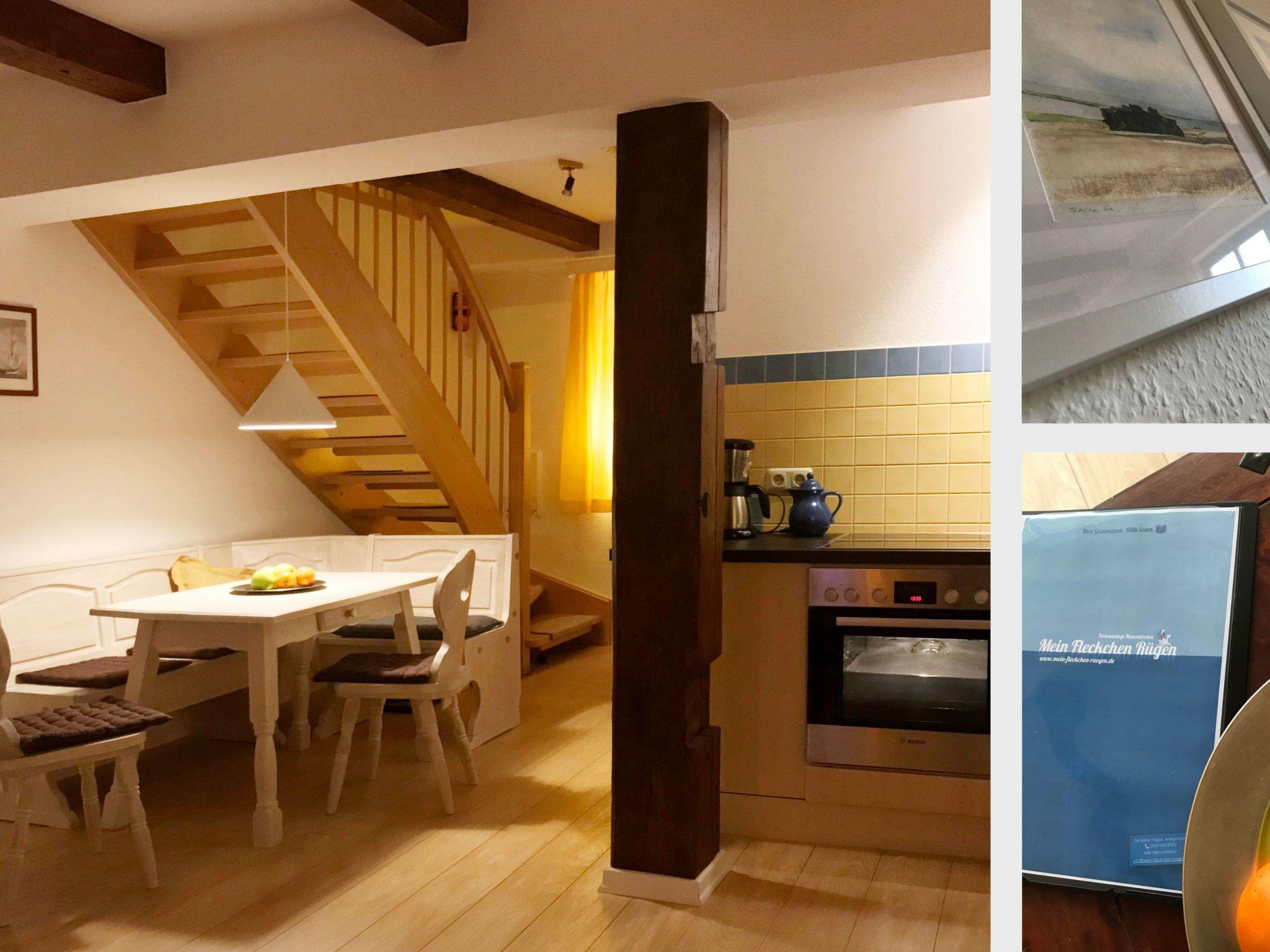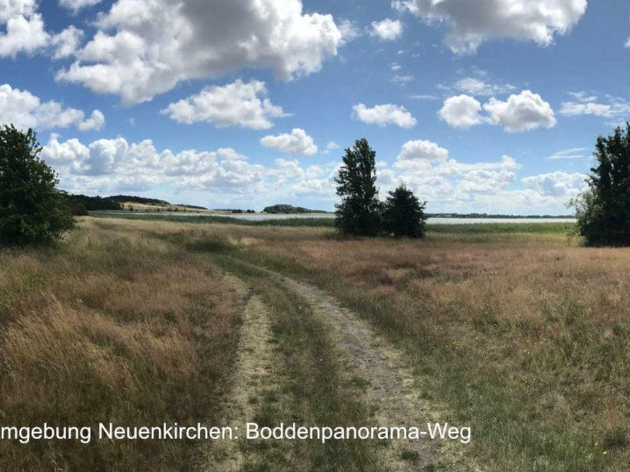 If you don't want to cook for yourself, the excellent cuisine (Mediterranean-influenced, German) of the "Wirtshaus Neuenkirchen" also provides culinary relaxation. For your daily needs, shopping in the grocery shop (bread rolls except Sunday) diagonally opposite is like travelling back in time to an ideal world. Both are about 50 metres away. The best place to buy delicious steaks is the "Wild und Rind" farm shop at the beginning of the village street. Also within walking distance is the small, pretty sandy beach for splashing around or cooling off in the Lebbiner Bodden in the evening, approx. 20 minutes directly on the former backdrop of the seal station from the popular TV series "Hallo Robbie". You are unlikely to see seals here, but you will find clean lagoon water as, depending on the weather, a strong current of water circulates between the Baltic Sea and the lagoon. The local peak of Neuenkirchen is "Hoch Hilgor". The walk is approx. 25 minutes from the holiday resort. From the observation tower you have a fantastic panoramic view of the island and, on a clear day, as far as Denmark to Møns Klint; the island of Hiddensee - Schaprode ferry harbour approx. 20 minutes by car; the pretty island capital and shopping town of Bergen also approx. 20 minutes by car; Tromper Wiek with kilometres of sandy beaches via Wittower ferry as well as Cape Arkona 35-45 minutes by car depending on the ferry connection; Binz approx. 30-40 minutes by car depending on traffic, Stralsund approx. 40 minutes by car, Gingst approx. 15 minutes by car.