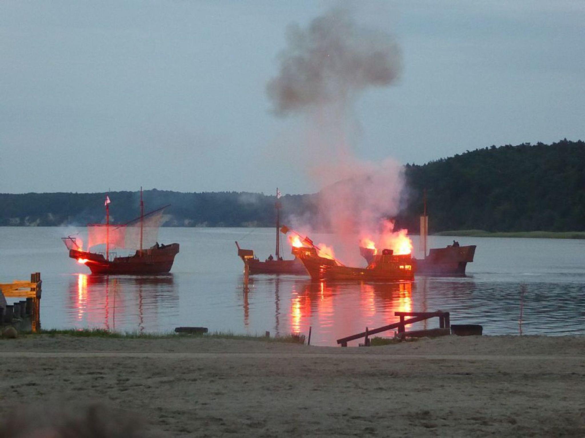 Enjoy walks along the bodden waters just 200 metres away or the sunset over the island Hiddensee from the balcony or the gallery, with a glass of wine. A holiday in harmony with nature. The largest and most beautiful beach on the island of Rügen, Schaabe, is just 12km away. It is 500 metres to the bodden with a grass beach, where you can fish with a permit. You can also enjoy kite surfing on the booden. The guesthouse Fähr-Eck in Trent offers homemade ice cream. In Schaprode in Schillings guesthouse, there is beef on the menu from the neighbouring island Öhe. Next door in the farm shop you can buy bread rolls and opposite there is the Eishafen with some exceptional sorts of ice cream. The ferry pier is right nearby, with ferries towards Hiddensee. In Schaprode there is a little beach by the campsite, the most beautiful and largest beach on Rügen called Schaabe, which can be accessed with the Wittow ferry.