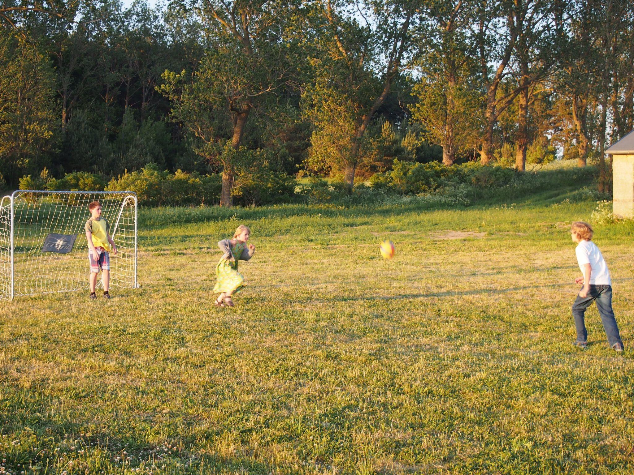 Older children can play football on the north side or on the trampoline. Smaller children play on the south side, always in view of their parents from the outdoor seating. If the weather is not so sunny, then it's off to the games room for all ages or to the large sauna in the coach house, with relaxation room and reading area, where you are sure to find something suitable among >1,000 books.