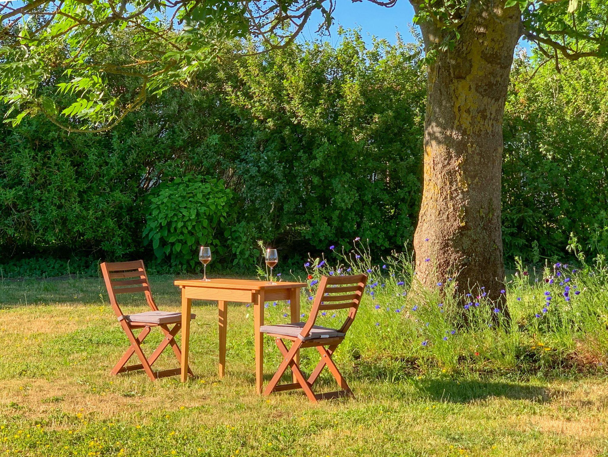 Das Grundstück und der Garten werden gemeinschaftlich von den Gästen genutzt. Im Schuppen stehen Trockner, Bügeleisen, Gartenmöbel, Feuerschale und Grill zur Verfügung.