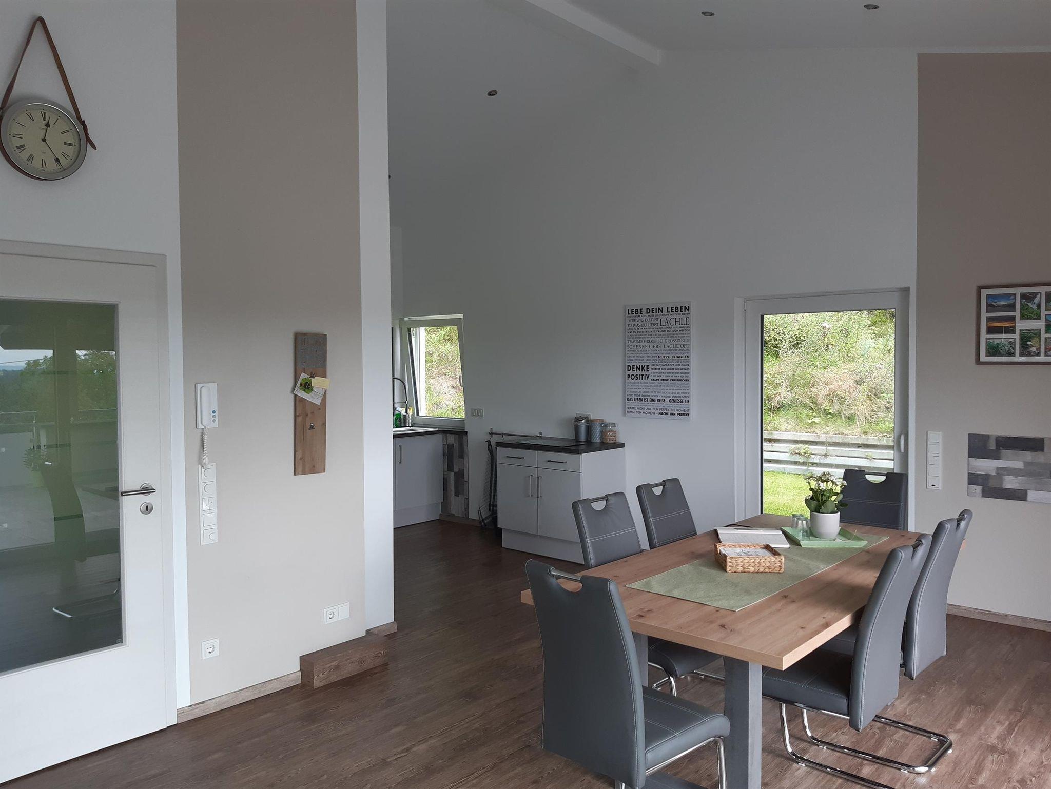 Unser Ferienhaus hat eine Wohnfläche von 100 qm und lädt Sie in das schöne Westerwald-Dorf Girkenroth (600 EW) ein. Das liebevoll hochwertig und modern eingerichtetes Ferienhaus steht Ihnen samt Grundstück von 800 qm zur alleinigen Nutzung zur Verfügung. Das Haus verfügt über 2 separate Schlafzimmer (1x Doppelbett 180*200cm) (2x Einzelbett 90*200), zwei Bäder mit Dusche und WC, eine Waschmaschine, sehr hochwertig ausgestattete Küche, großes Ess-Wohn-zimmer und Abstellraum. Vermietet wird an bis zu 6 Personen, (Ausziehcoach im Wohnzimmer). Bei Ankunft sind Ihre Betten bezogen. Zur Erstausstattung liegt pro Person ein Duschtuch und ein Handtuch für Sie bereit. Das absolute Highlight ist die große, teilweise überdachte Terrasse mit gemütlicher Gartenlounge, Weber Holzkohlegrill und faszinierendem Weitblick.
