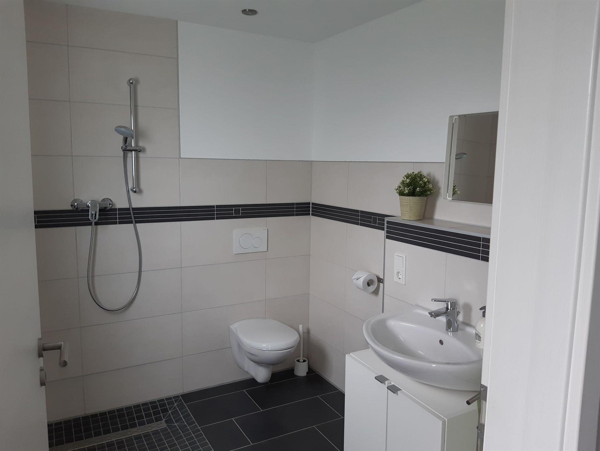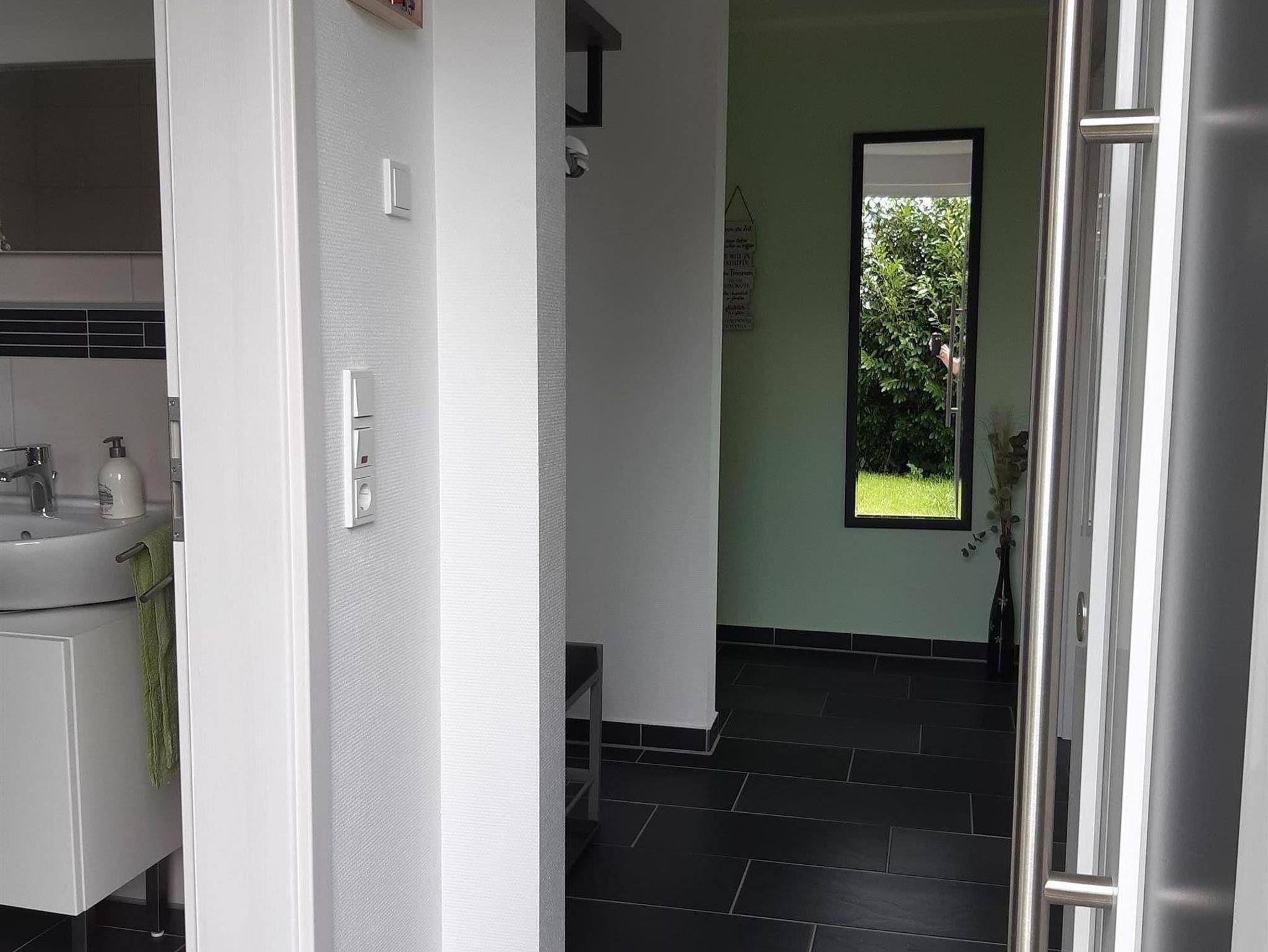 Die Bäder sind sehr weiträumig und die große Dusche ist frei begehbar. Die voll ausgestattete Küche ist offen und mit dem Wohnraum verbunden. Die Wohnräume sind aufgrund der großen Fenster lichtdurchflutet, es handelt sich um ein Niedrigenergie-Haus mit 3-fach Verglasung und Fußbodenheizung, das Panoramafenster im Wohnbereich hat eine 2 Meter breite Schiebetür, welche Zugang zur großen Terrasse ist.