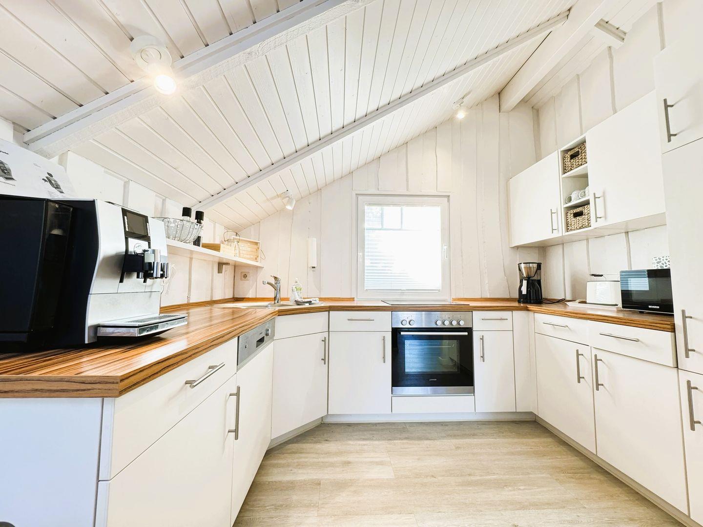 Das Haus bietet drei Schlafzimmer, ein Duschbad mit Waschmaschine sowie ein gemütliches Wohnzimmer mit Kaminofen, der auch an kühleren Tagen für Wohlfühlatmosphäre sorgt und Relaxsessel. Die offene Küche ist komplett ausgestattet – inklusive Jura Kaffee-Vollautomat, Kaffeemaschine, SodaStream, Mikrowelle und Geschirrspüler.