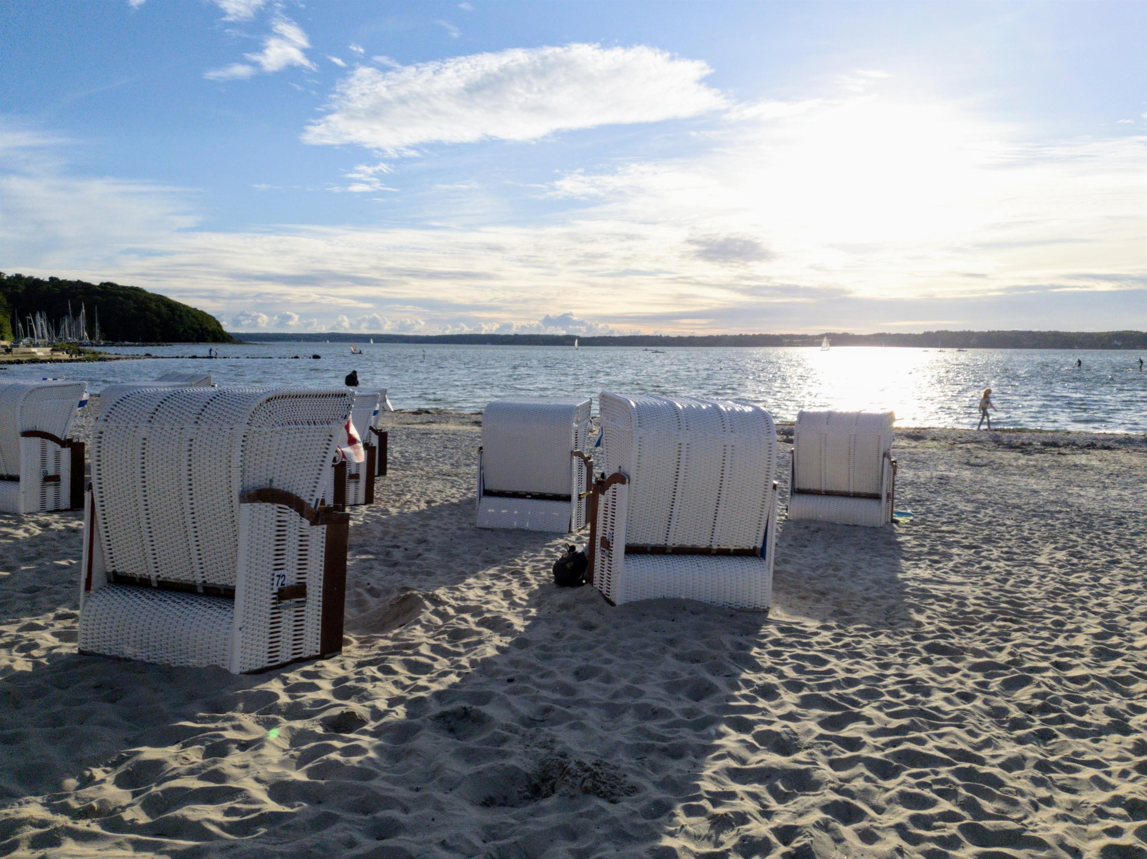Von Mai bis Ende September steht Ihnen eine Strandkorb am Glücksburger Strand zur Verfügung.