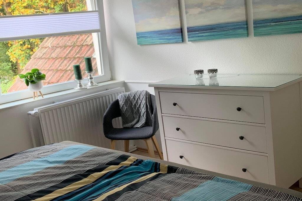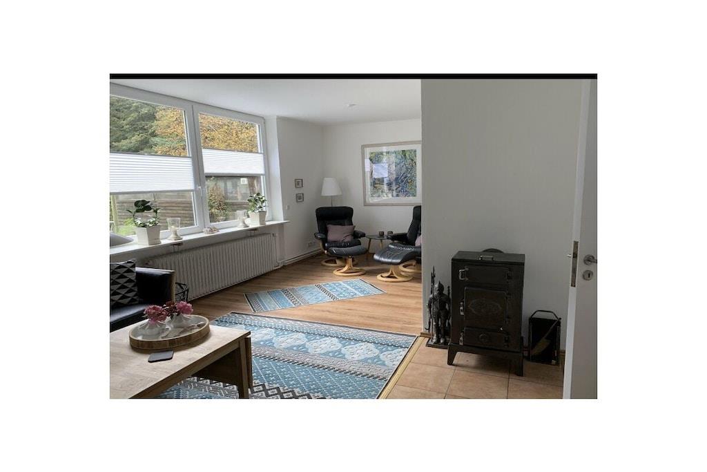 Vores ikke-ryger feriehus, "Utspann", ligger lige i skovbrynet og er egnet til fire personer. Det 100 m² store boligareal strækker sig over to soveværelser, hver med en dobbeltseng, en hyggelig stue med tv, læsehjørne og direkte udsigt over landskabet, et udstyret køkken med spiseplads og opvaskemaskine samt et badeværelse med naturligt lys. Nyd den idylliske og rolige beliggenhed i dette uberørte landskab.