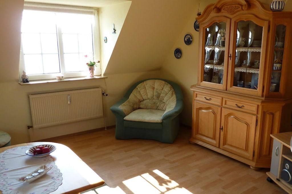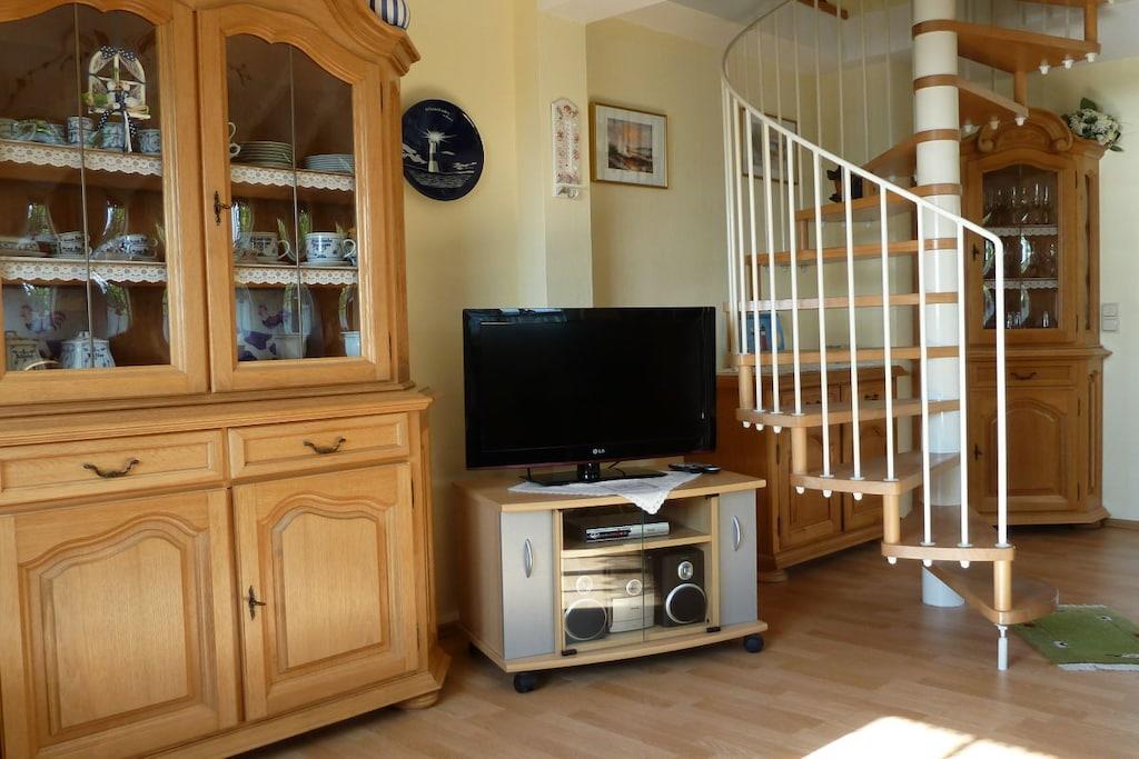 Das Gästehaus Holnis an der Ostsee liegt direkt am langen weißen Kurstrand. Vor dem Ferienhaus befinden sich eine Terrasse und Wiese mit Sitzgelegenheiten. Unsere Ferienwohnung ist komfortabel eingerichtet. Das Wohnzimmer ist mit einer Polstergarnitur ausgestattet, die auch als Schlafcouch zu benutzen ist. Eine Essgruppe eine komplette Küche mit Kühlschrank, Elektroherd, Mikrowelle, eine Spüle und eine Kaffeemaschine usw. sind vorhanden. Ein Schlafraum mit einem Doppelbett und ein WC sind durch eine Wendeltreppe bequem zu erreichen. Die Ferienwohnung ist Allergiker geeignet und kindergerecht. Sonnenliegenflächen und Gartenmöbel stehen draußen für Sie bereit. Auf für Ihren PKW ist gesorgt, Stellplätze sind für jede Ferienwohnung auf dem Grundstück angelegt.
