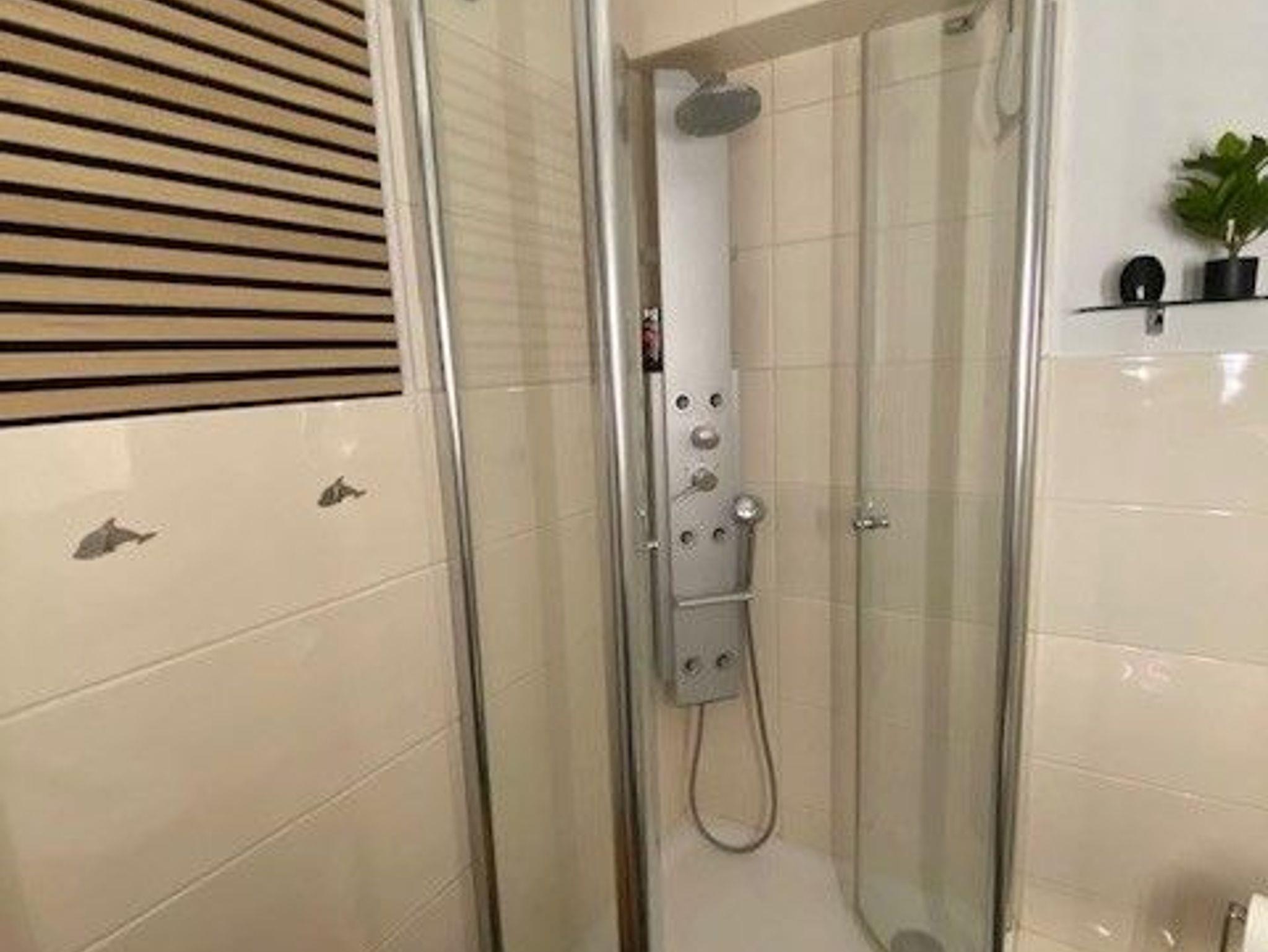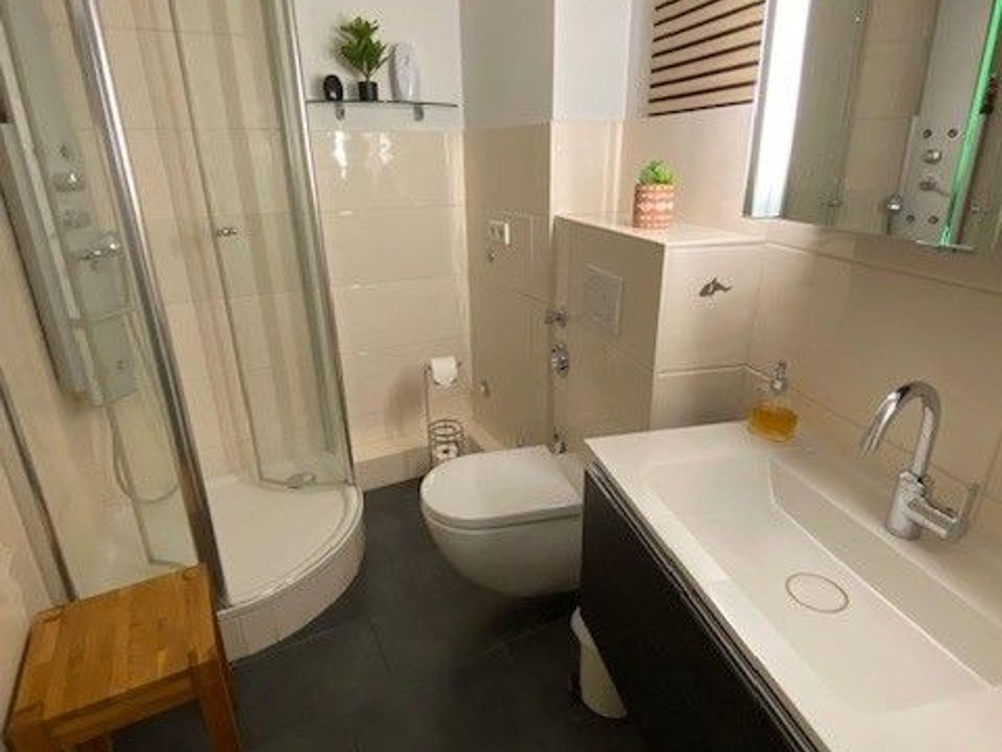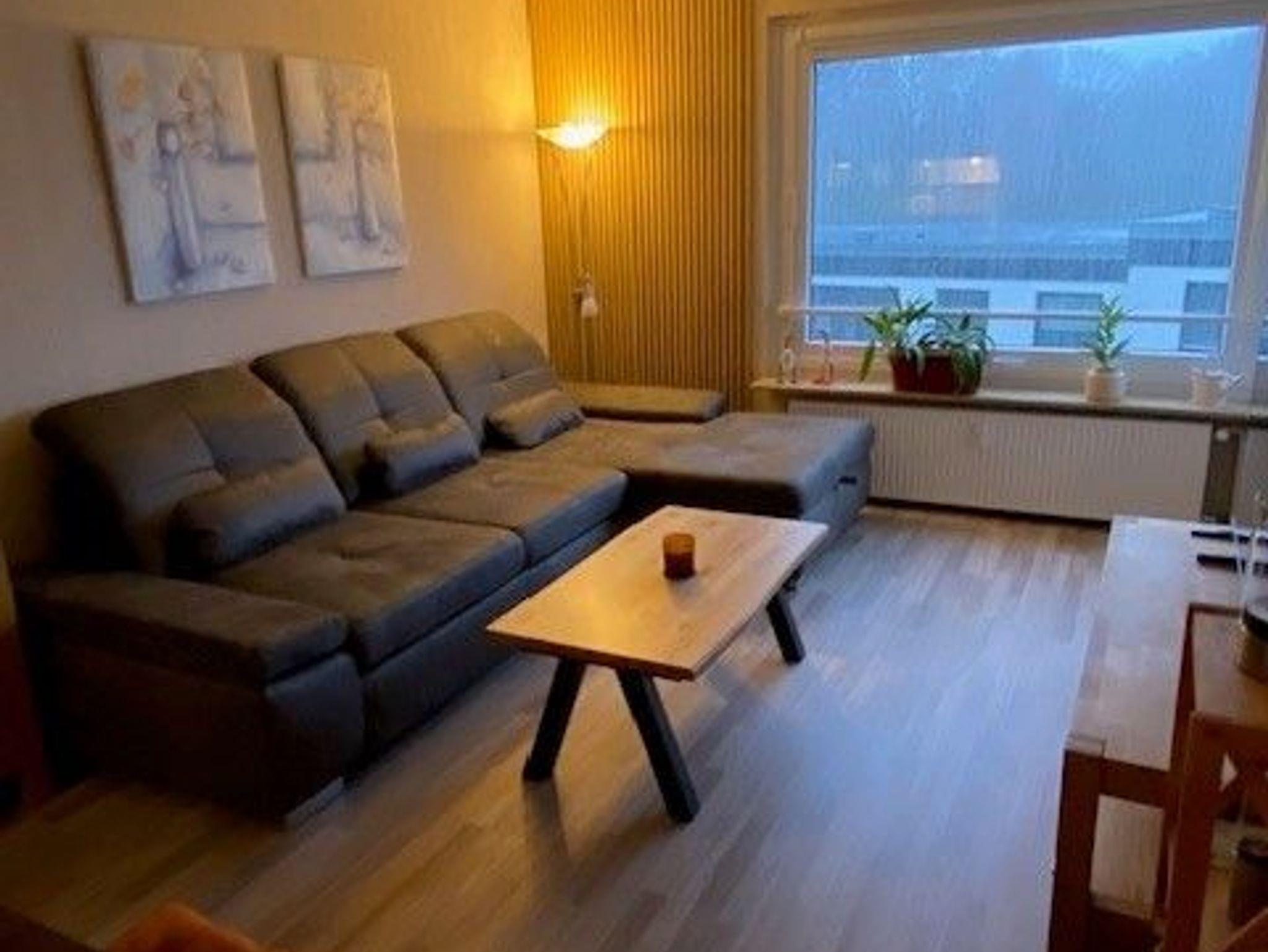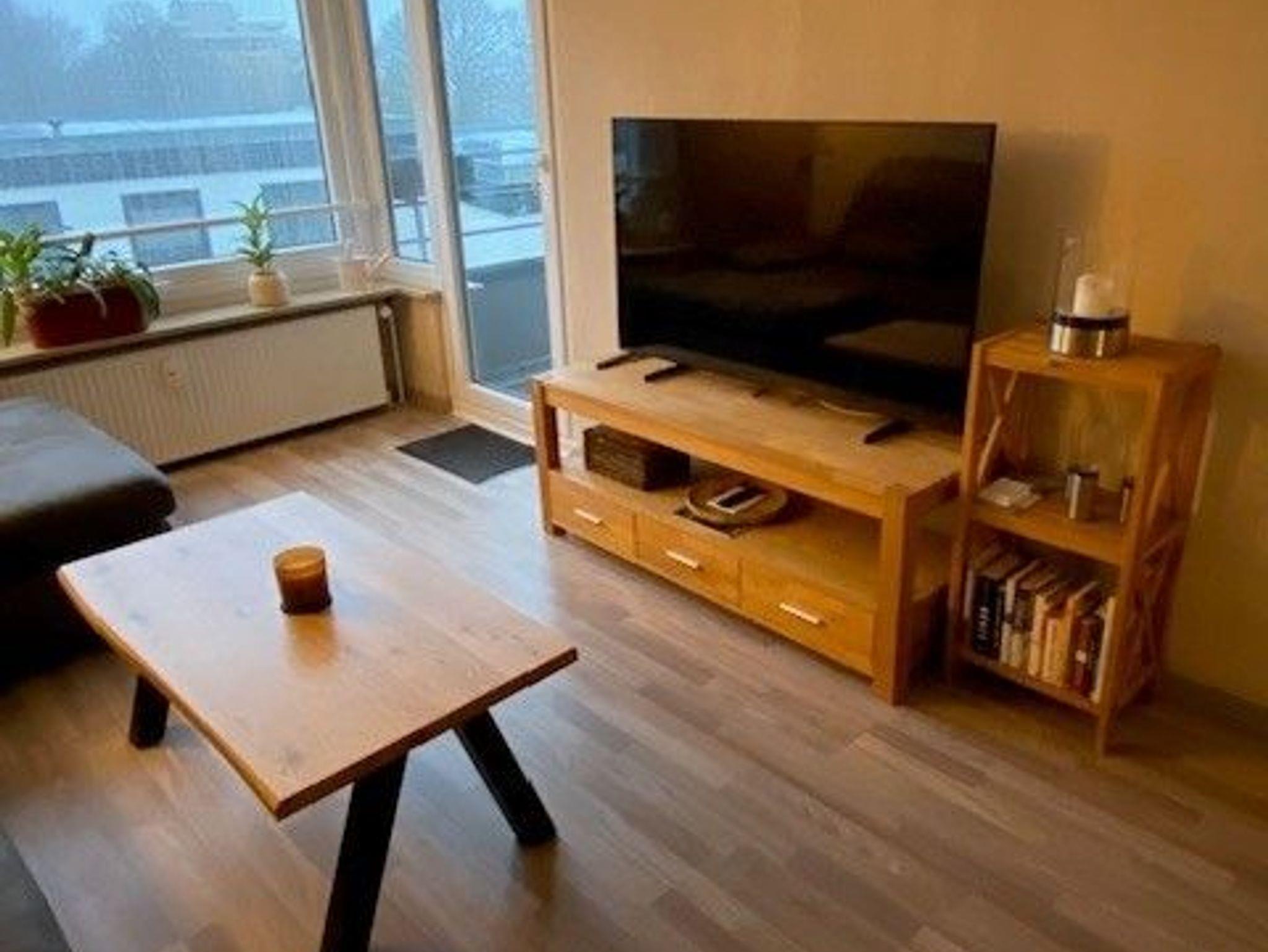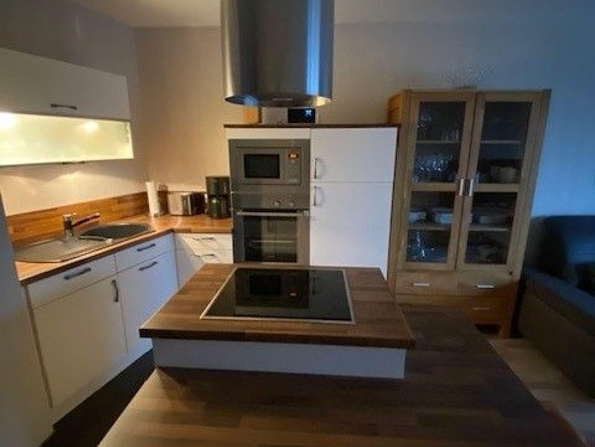 Die Wohnung besteht aus einem hellen und gemütlichen Wohn-/ Essbereich mit einem Schlafsofa, offener, komplett ausgestatteter Einbauküche mit Geschirrspüler und Kaffeemaschine, einem Duschbad und einem Balkon.