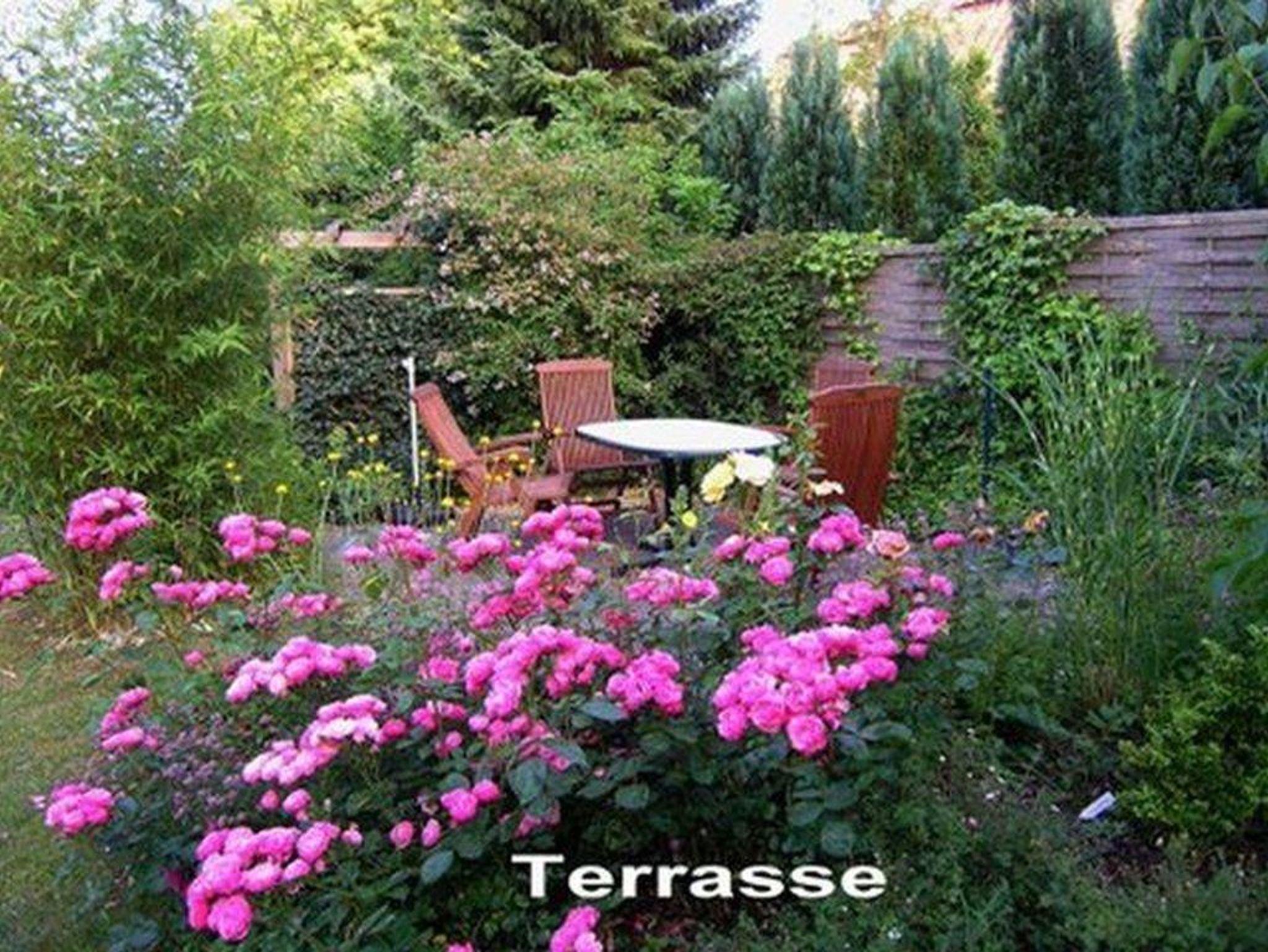 • 1 separate Terrasse mit Gartenmöbeln, Sitzauflagen und einem Holzkohlegrill