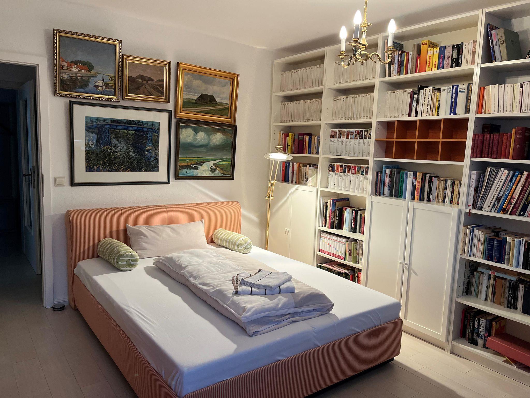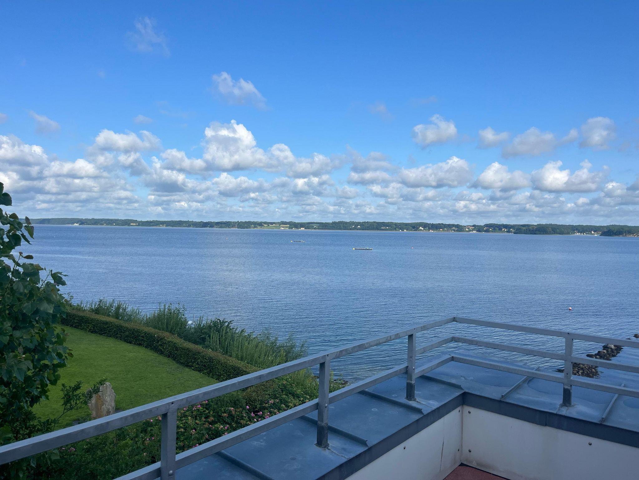 Die Schlafzimmer sind gemütlich eingerichtet, eins davon mit Doppelbett, das andere mit einem Queensize Bett (140x200 cm) für bis zu zwei Personen und eigenem Balkon. Alternativ gibt es im Wohnzimmer ein Schrankbett für eine Person. In der Küche und dem übergehenden Wohnzimmer haben Sie einen herrlichen Blick direkt auf die Flensburger Förde. Der angrenzende Rundum-Balkon bietet genug Platz um zu entspannen oder die Aussicht zu genießen.