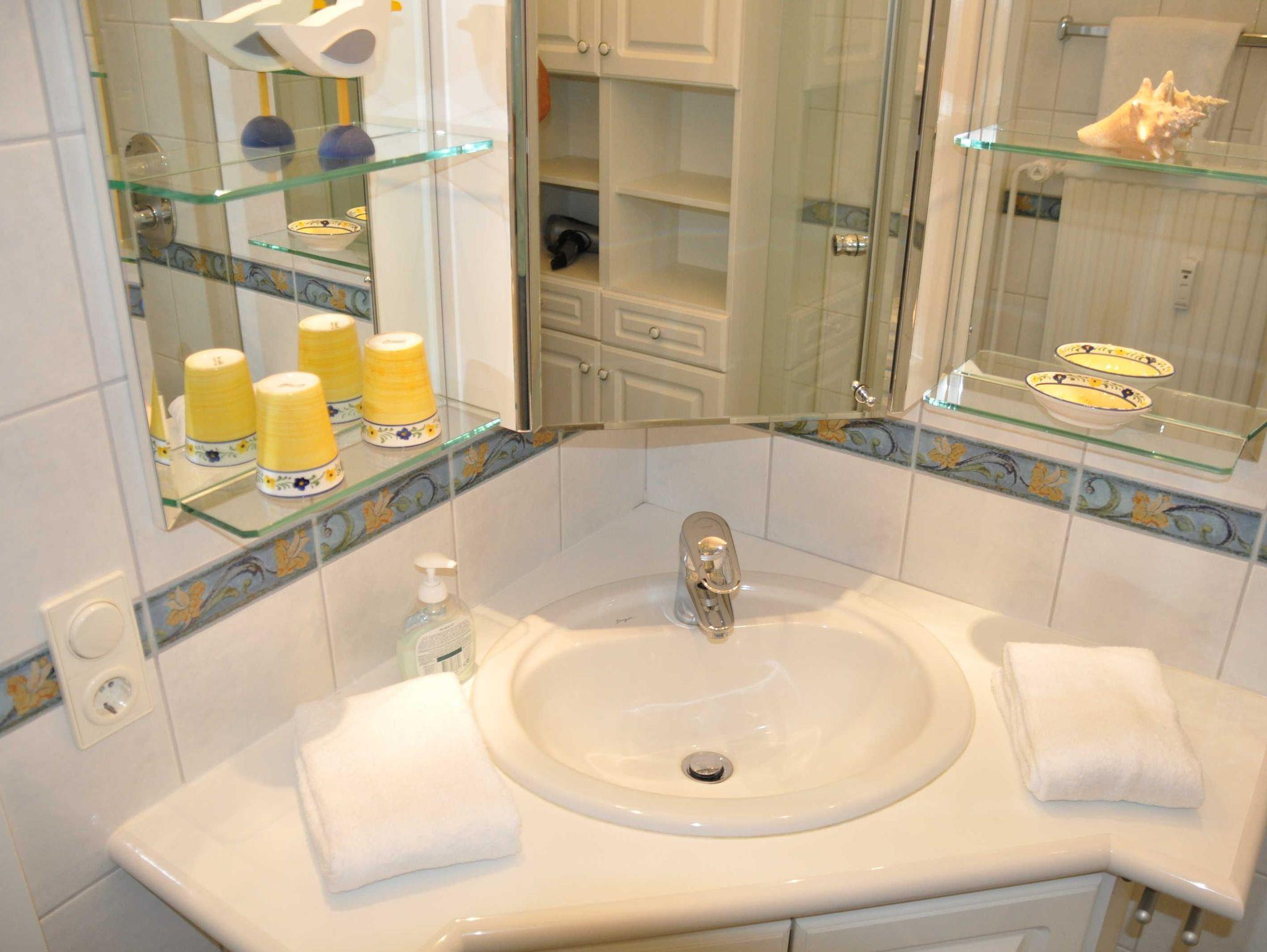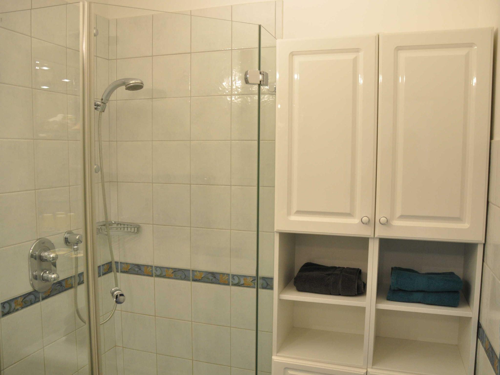 • WC (1qm) und Dusche (80cm x 90cm) getrennt. Für sehr korpulente Gäste ggf. nicht ausreichend.