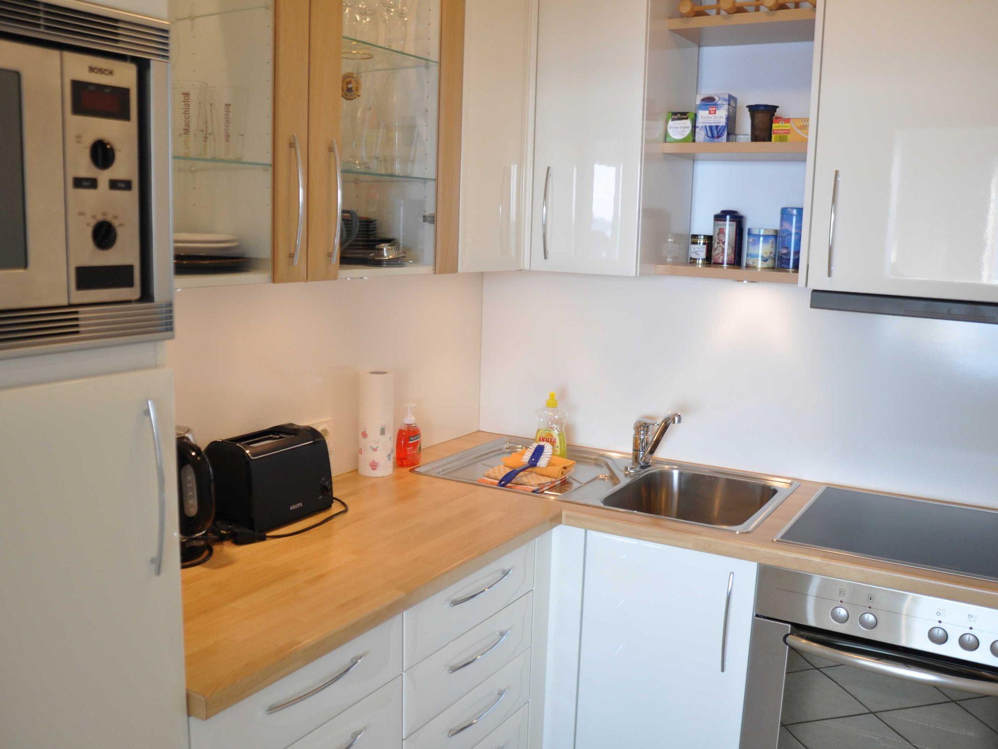 • gut ausgestattete Küche mit Herd, Kühlschrank, Mikrowelle, Kaffeemaschine, Wasserkocher, Toaster usw.