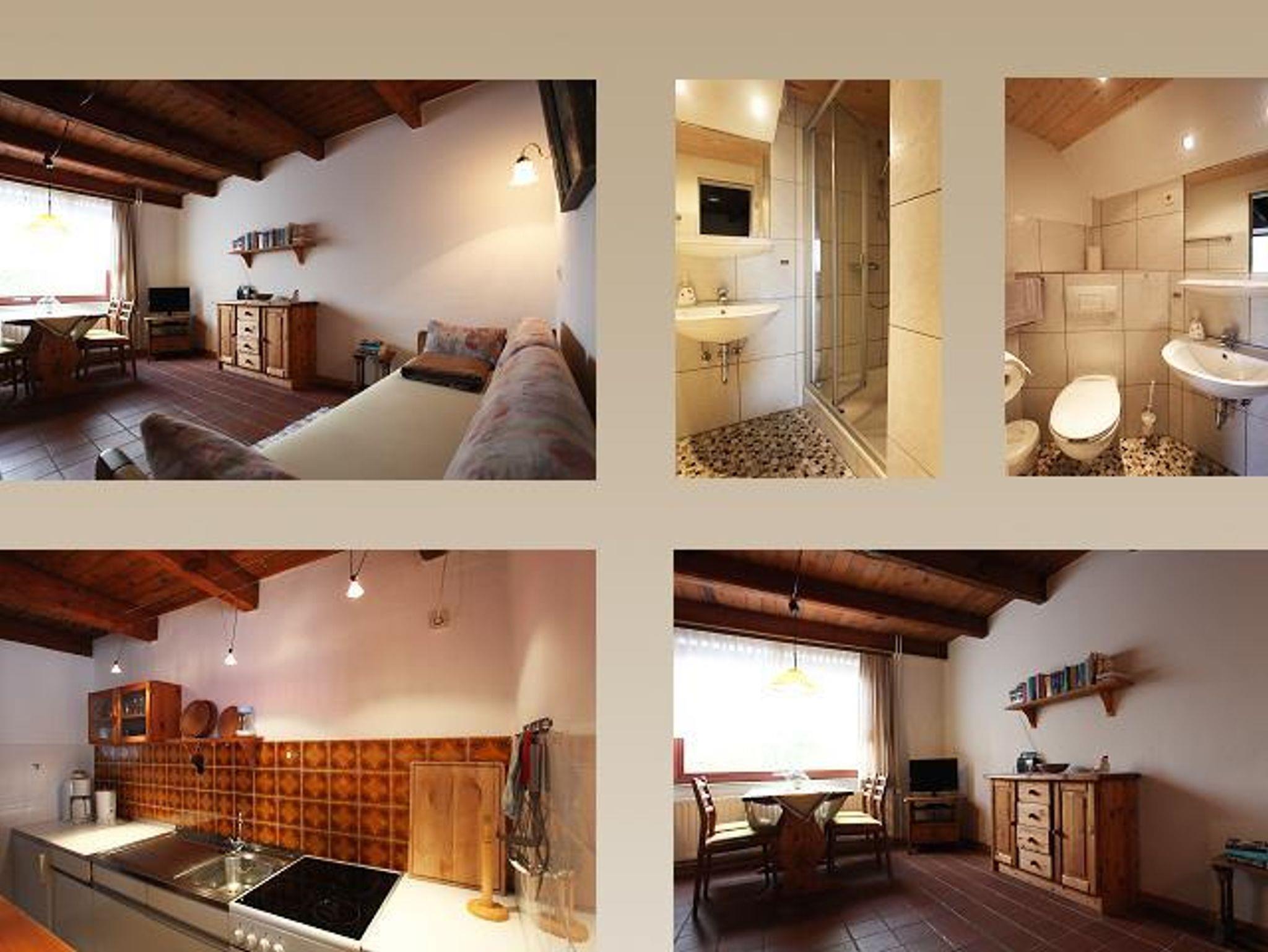 Bauernhaus und bietet vier Ferienwohnungen, die mit natürlichen Materialien wie