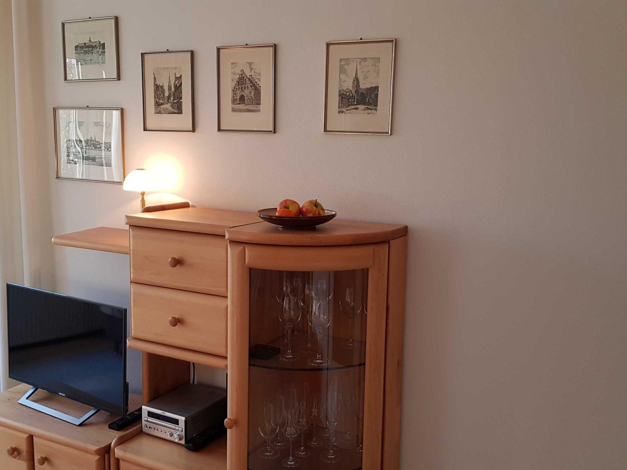Appartement in Glücksburg (Ostsee) für gehobene Ansprüche, 3. Etage - App. Nr. 3332 (Aufzug vorhanden) im Appartementhaus „Sandwighof“. Das Appartement ist 43 m² groß und ideal für einen Ostsee-Urlaub mit 2 Personen, Wohnraum mit Balkon, Kabel-Flachbild-Fernseher, WLAN, CD-DVD Musikanlage, ein Schlafraum, Küche mit Einbauherd, Dunstabzugshaube und Geschirrspüler, Mikrowelle, Bad mit Duschwanne und WC, Müllschlucker.