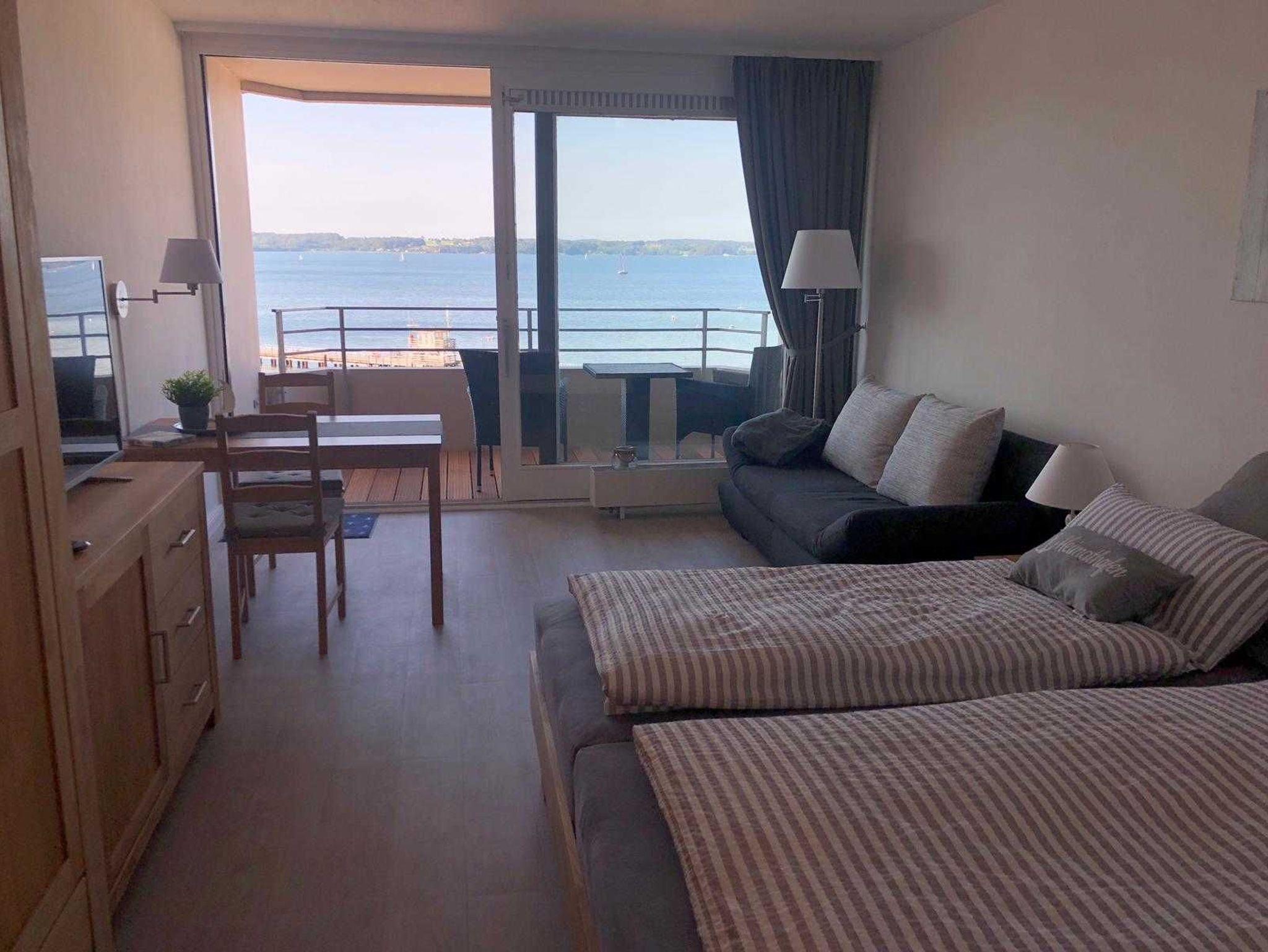 Das Appartement befindet sich in einem Hotelgebäude und liegt direkt an der Promenade der Flensburger Förde/ Ostsee in Glücksburg.