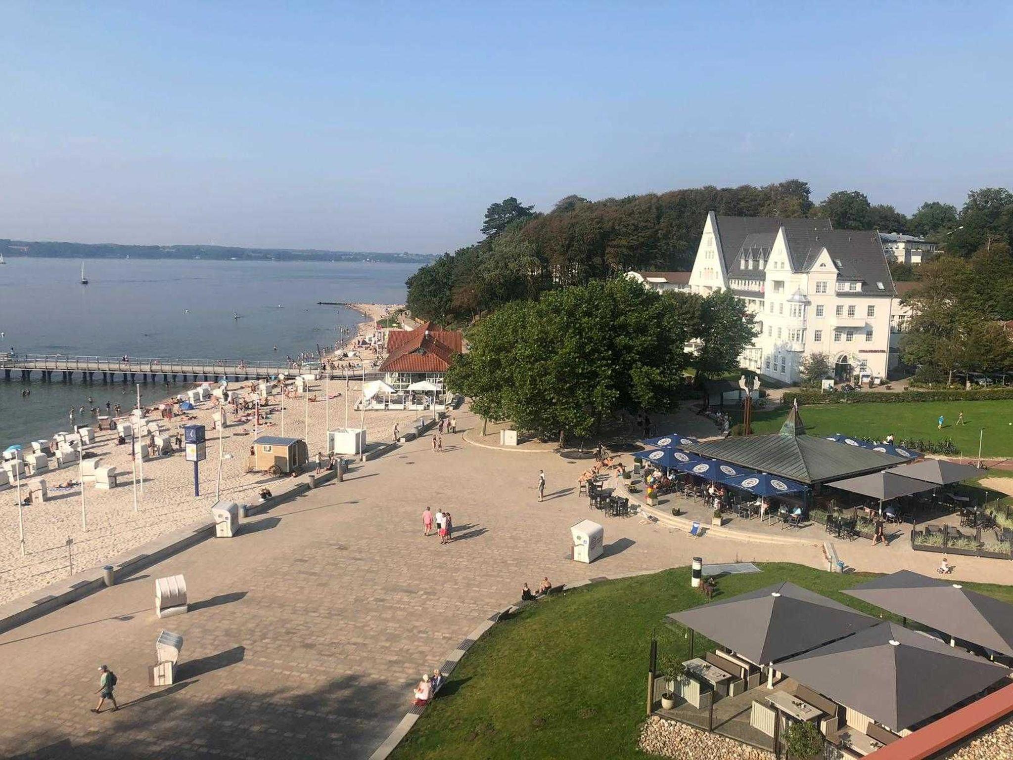 Das Higlight ist der Meerblick, den Sie vom Balkon der Ferienwohnung (3. OG) betrachten können. Ein Blick, der bis nach Dänemark reicht.