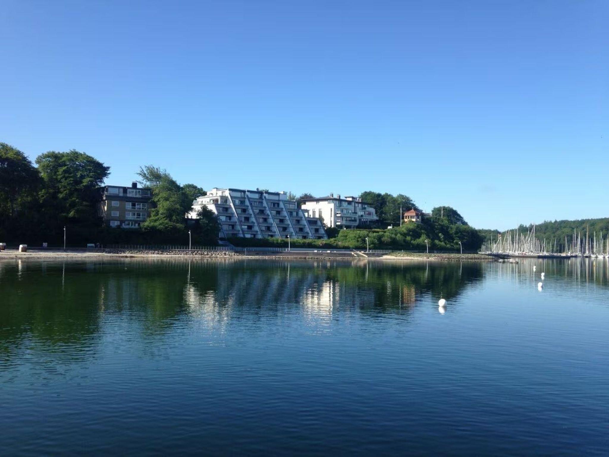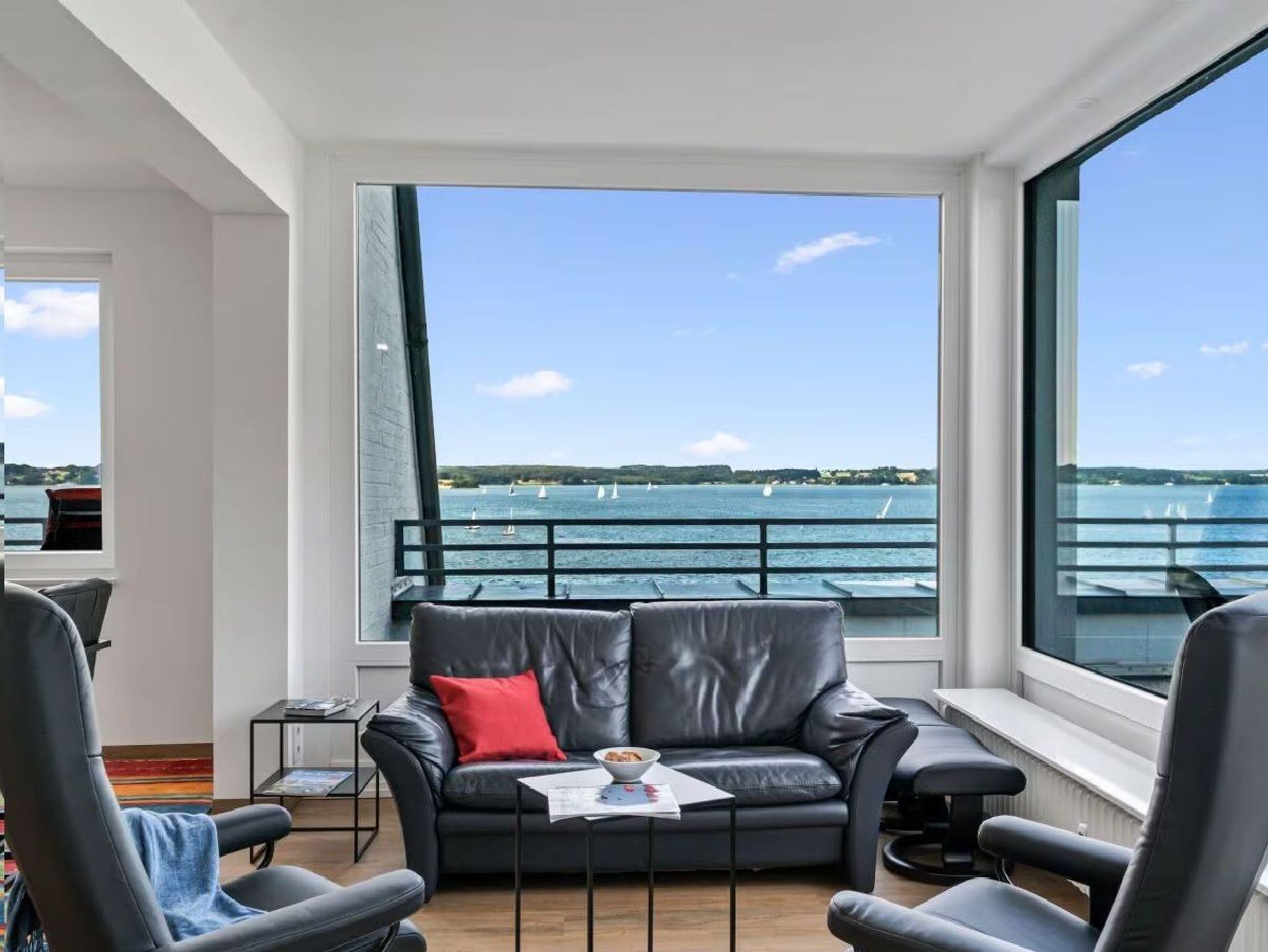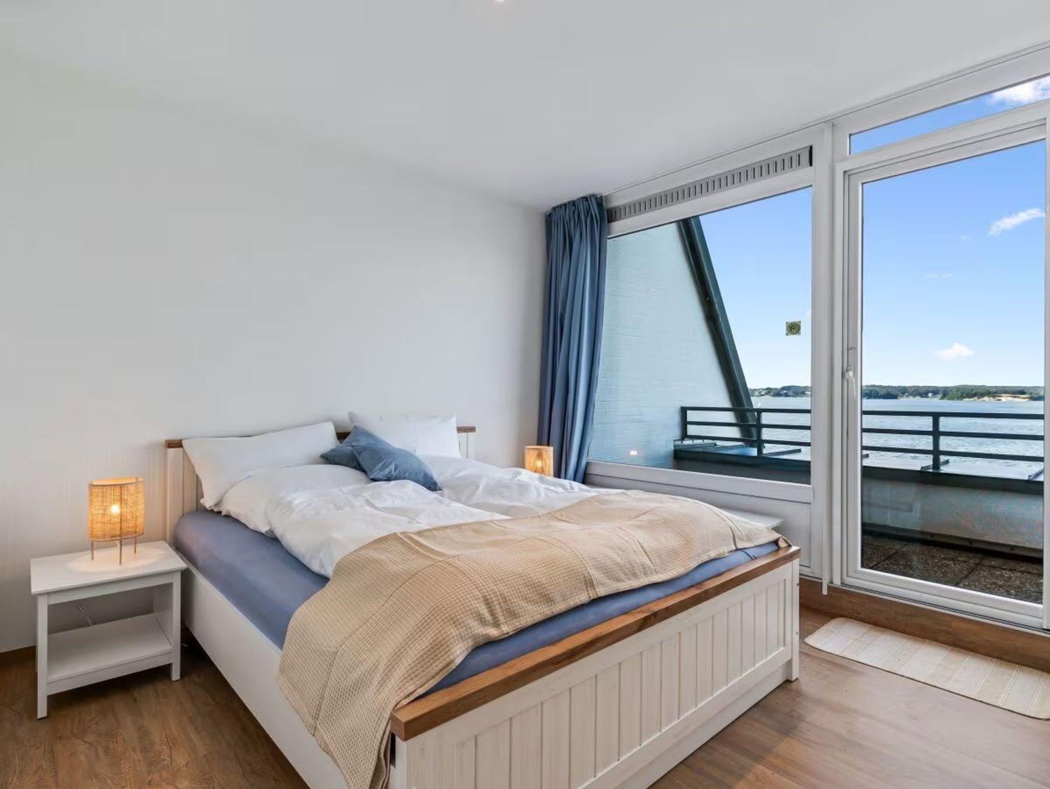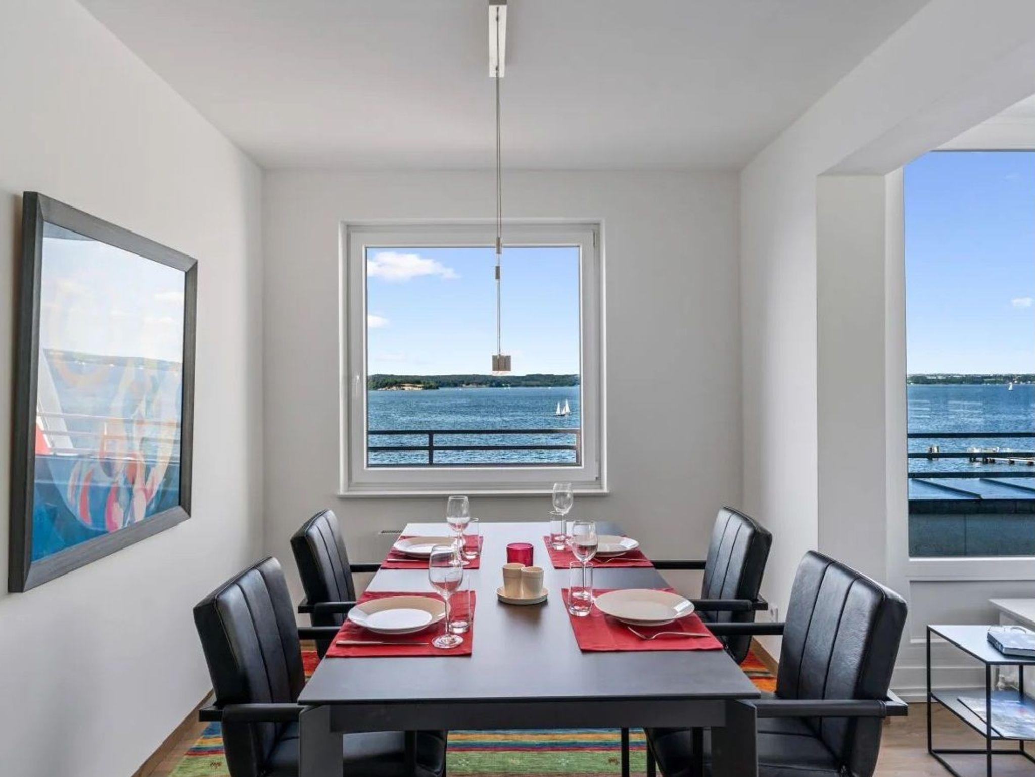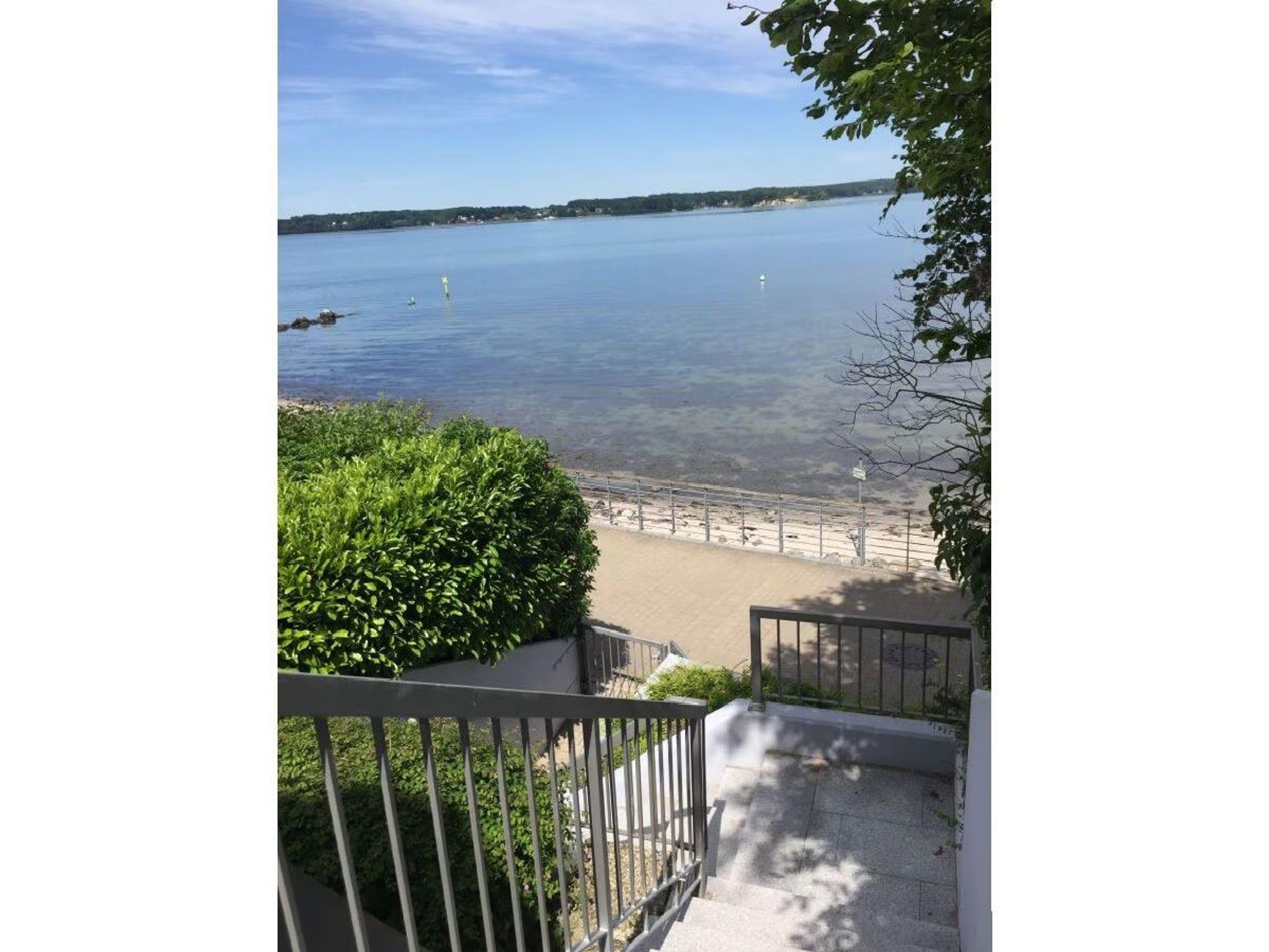 Ferienwohnung für 4 Personen in Top-Lage, direkt am Strand Sandwig in Glücksburg, Flensburger Förde, mit nicht einsehbarem Balkon und 40m² großer Dachterrasse zur Wasserseite. 2 Schlafzimmer, Wohn-Esszimmer und offene Küche mit Blick über die Förde bis hin zu den Ochseninseln in Dänemark. Bad und zusätzliches GästeWC. Großzügige Dachterrasse zum Frühstücken und auch für Yoga- oder Pilates-Übungen zu zweit oder ggf. auch mit Fitnesstrainer...? (Adressen zwecks Buchung können vermittelt werden). Yachtschule und Schwimmen in der Förde oder im Herbst/Winter in der 5 Minuten fußläufig gelegenen Fördeland-Therme? Erholung und Fitness pur!
