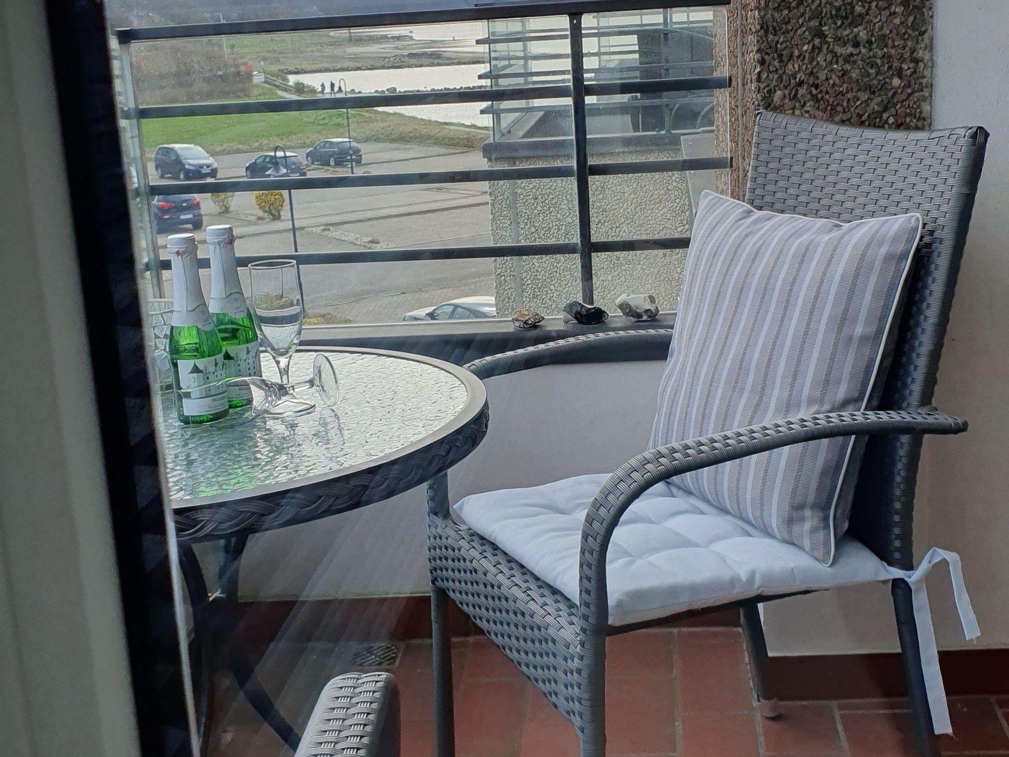 • Balkon mit Tisch und bequemen Stühlen
