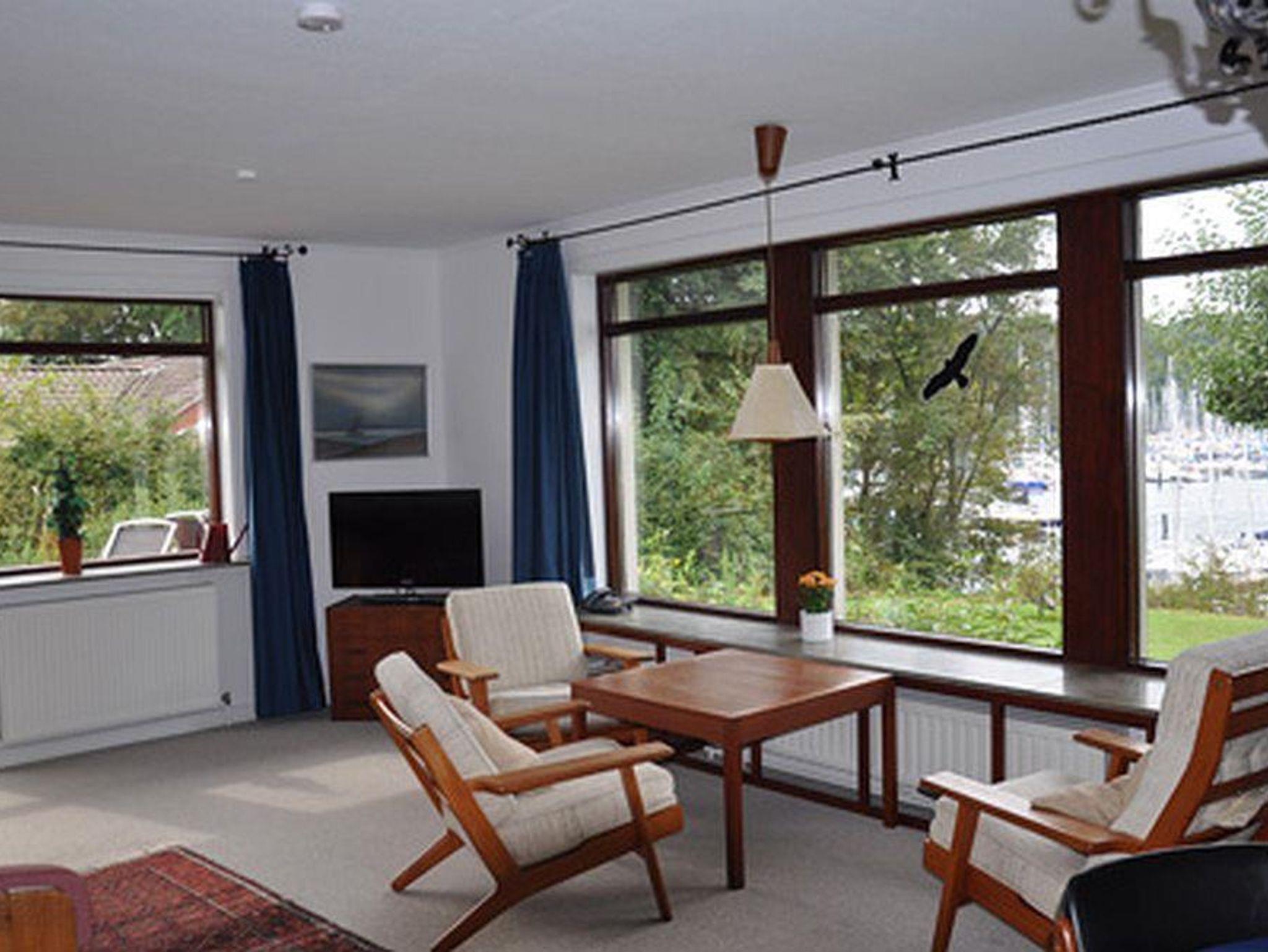 Im Wohnzimmer gibt es eine Sitzecke mit wunderschönen Blick über die Förde und den Yachthafen. W-LAN, ein LCD Satelliten TV, eine Couch, die mit wenigen Handgriffen zu einem Zweier-Bett (auch als zwei Einzelbetten) umgestaltet werden kann.