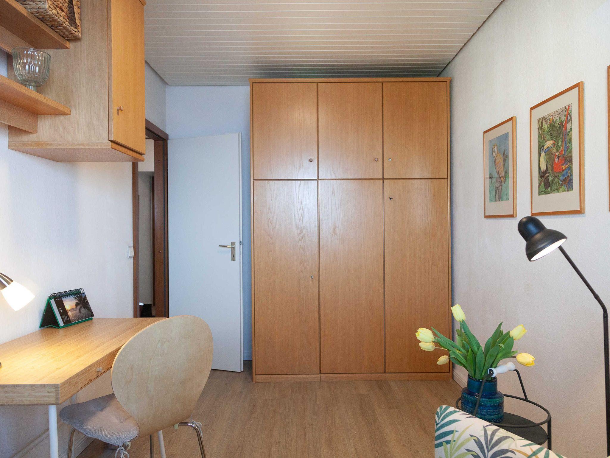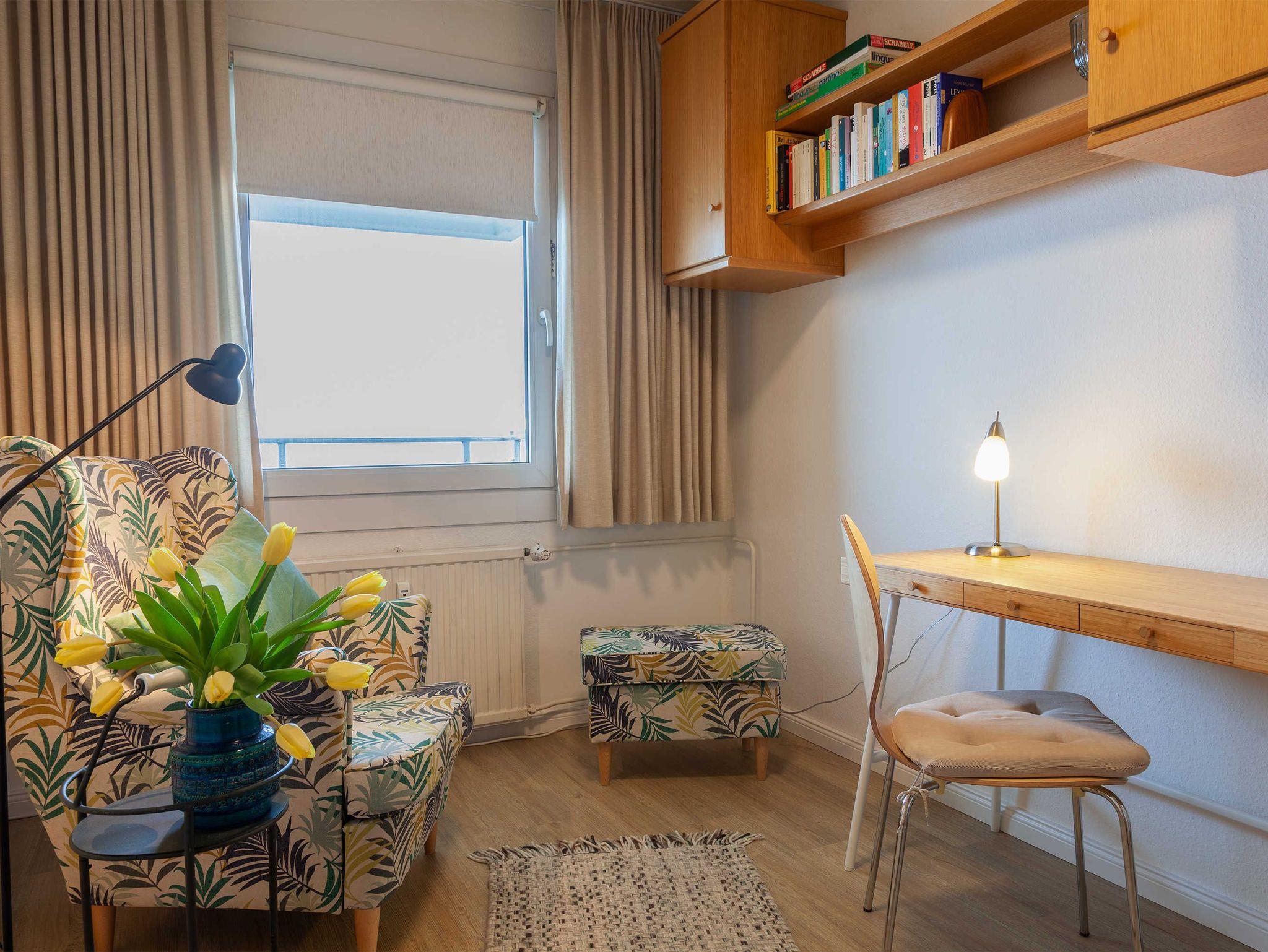 • Lese-Arbeitszimmer mit Schreibtisch, gemütlichen Sessel mit Hocker und einem Exttraschrankbett