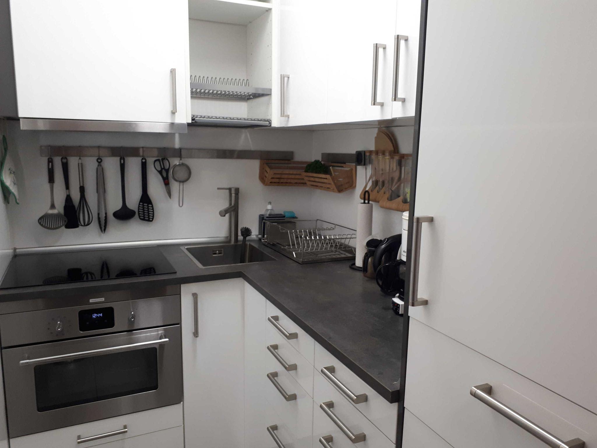 • Neue Küche mit Induktionsherd, Mikrowelle, Kühlschrank, Kaffeemaschine