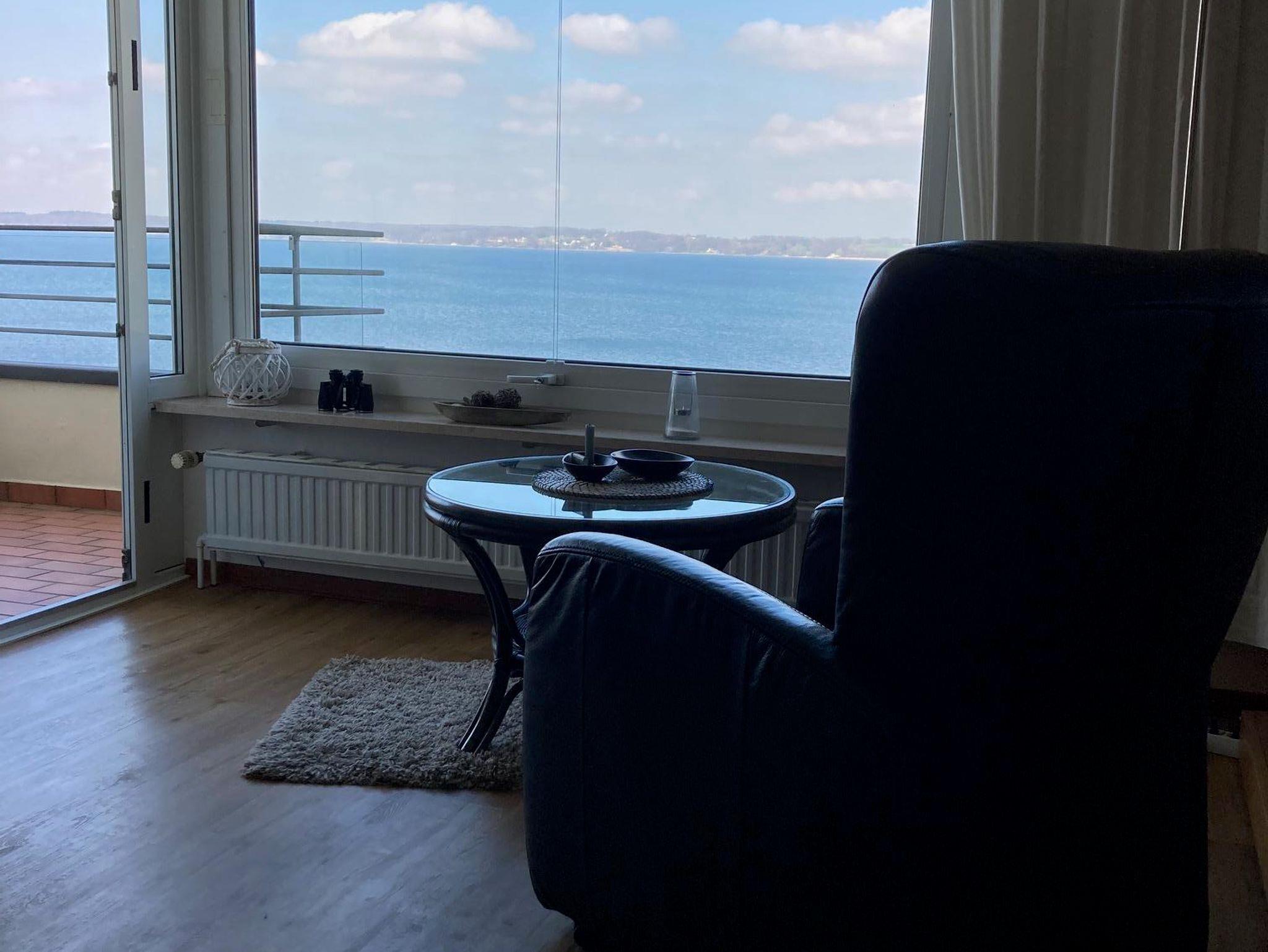 Einen traumhaften Blick über eines der schönsten Segelreviere, die Flensburger Förde und Dänemark, bietet die liebevoll eingerichtete Ferienwohnung die sich in der 4. Etage in Glücksburg-Schausende in einem ruhigen Mehrparteienhaus mit Aufzug befindet. Die Ferienwohnung besteht aus einem gemütlich und gepflegten eingerichteten Wohn-, Eß- und Schlafraum, Duschbad, Küche, Flur und Balkon. W-LAN kostenlos verhanden, Münzwasch- und Trockenautomat befinden sich zur Benutzung im Keller.