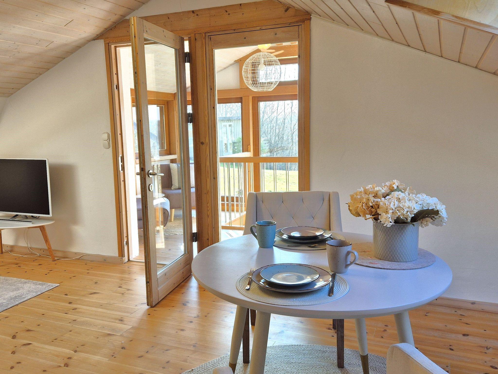 Genießen Sie den tollen Blick auf die Landschaft in dieser komfortablen Ferienwohnung.