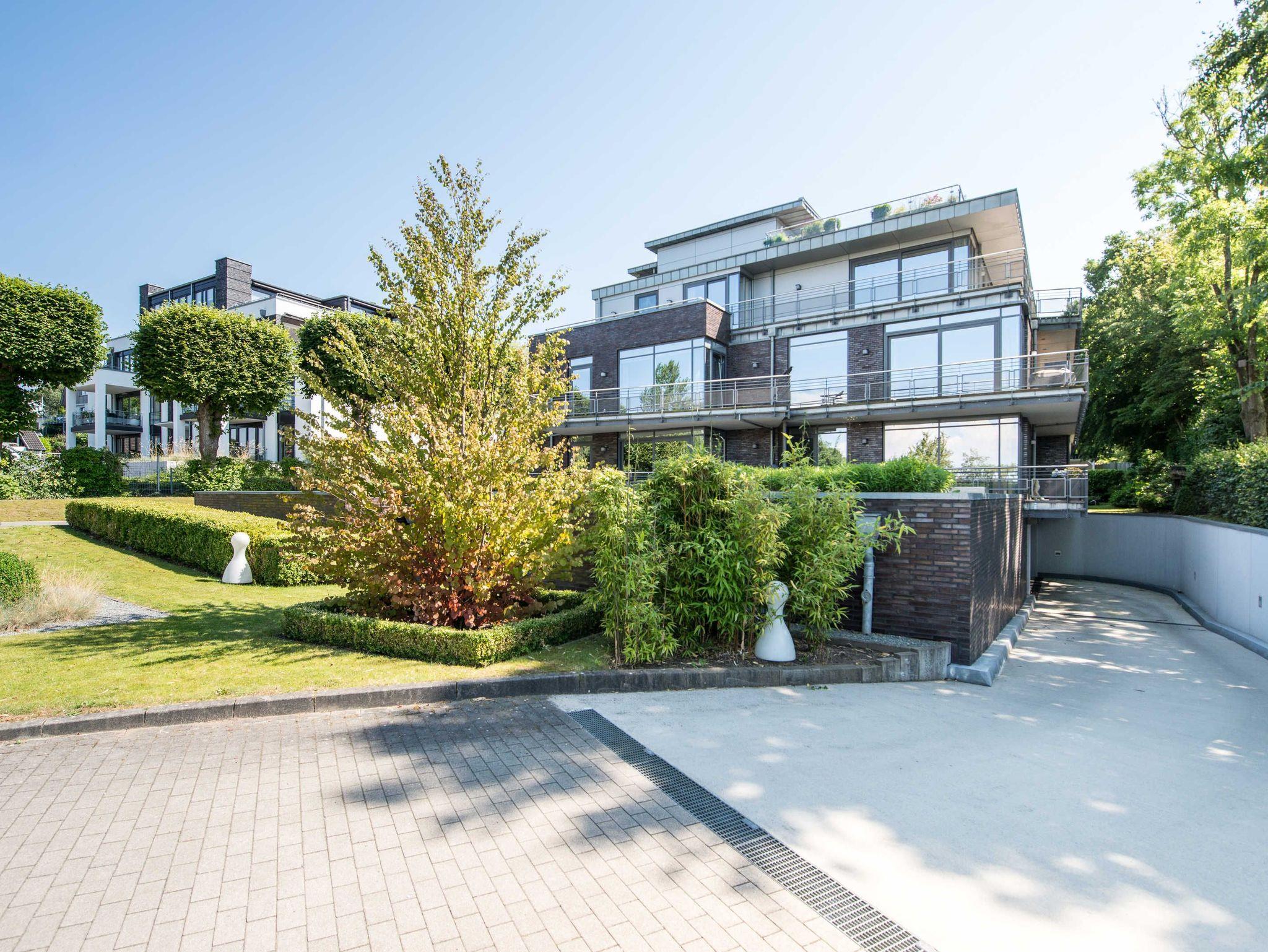 Das Haus, in dem sich die Wohnung befindet, ist ein architektonischer Hingucker und von einem Feng-Shui-Garten umgeben.