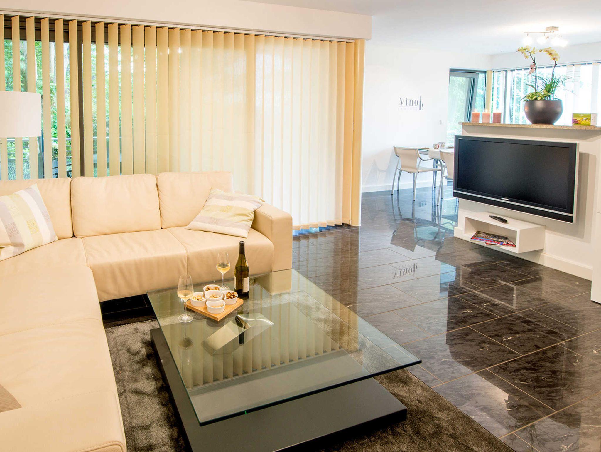 • Der helle Wohnraum lädt zu gemütlichen Abendstunden ein. Ob Sie eine DVD schauen möchten oder einfach nur den Ausblick auf die Förde und die vielen Segler und Wassersportler genießen! Vom Wohnraum aus gelangen Sie über die Glasfront mit Schiebetür auf eine geräumige Eckterrasse ebenfalls mit Fördeblick.