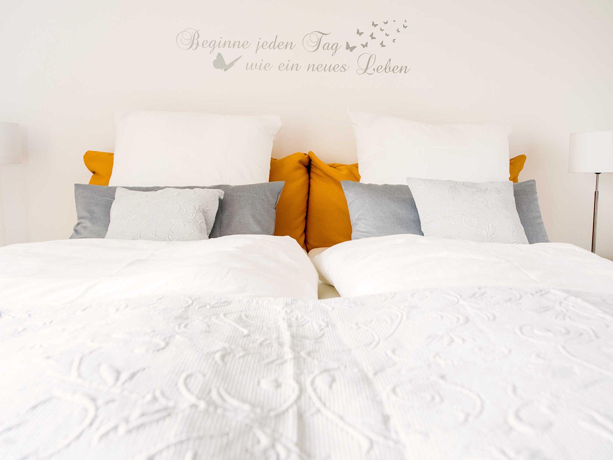 • Das geräumige Schlafzimmer verfügt über ein Doppelbett mit zwei Nachttischschränkchen. Es besteht die Möglichkeit ein Beistellbett hineinzustellen. Die moderne Einrichtung mit gelben Farbakzenten bringt Farbe in Ihren Urlaub.Der übergroße Kleiderschrank bietet Ihnen die Möglichkeit, all Ihre Sachen geordnet und komfortabel unterzubringen.