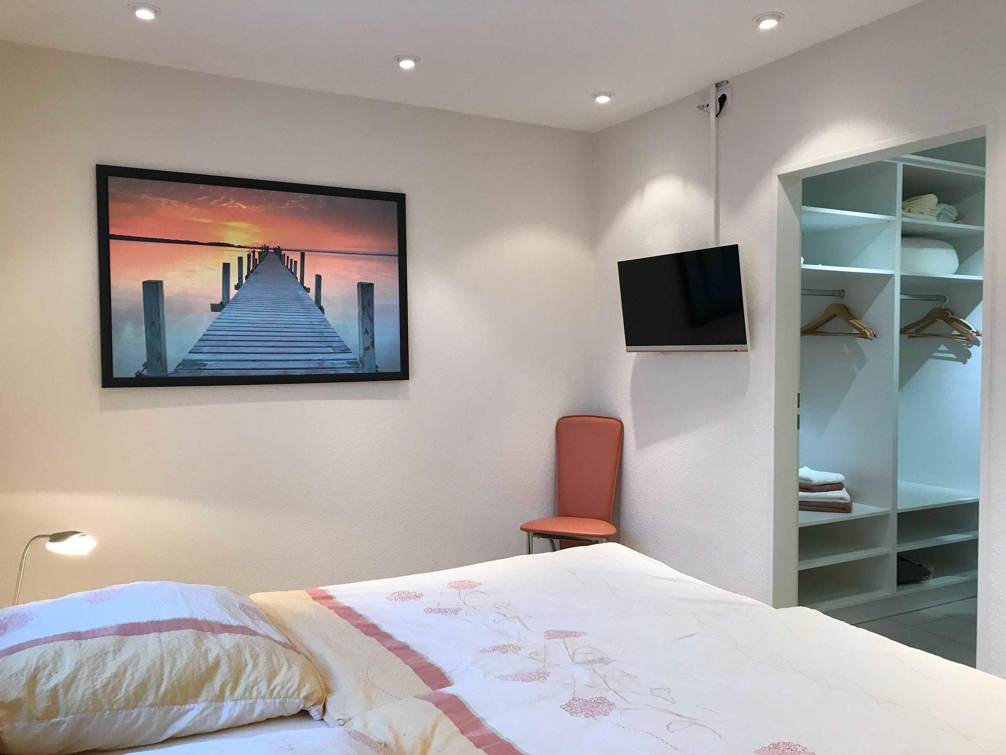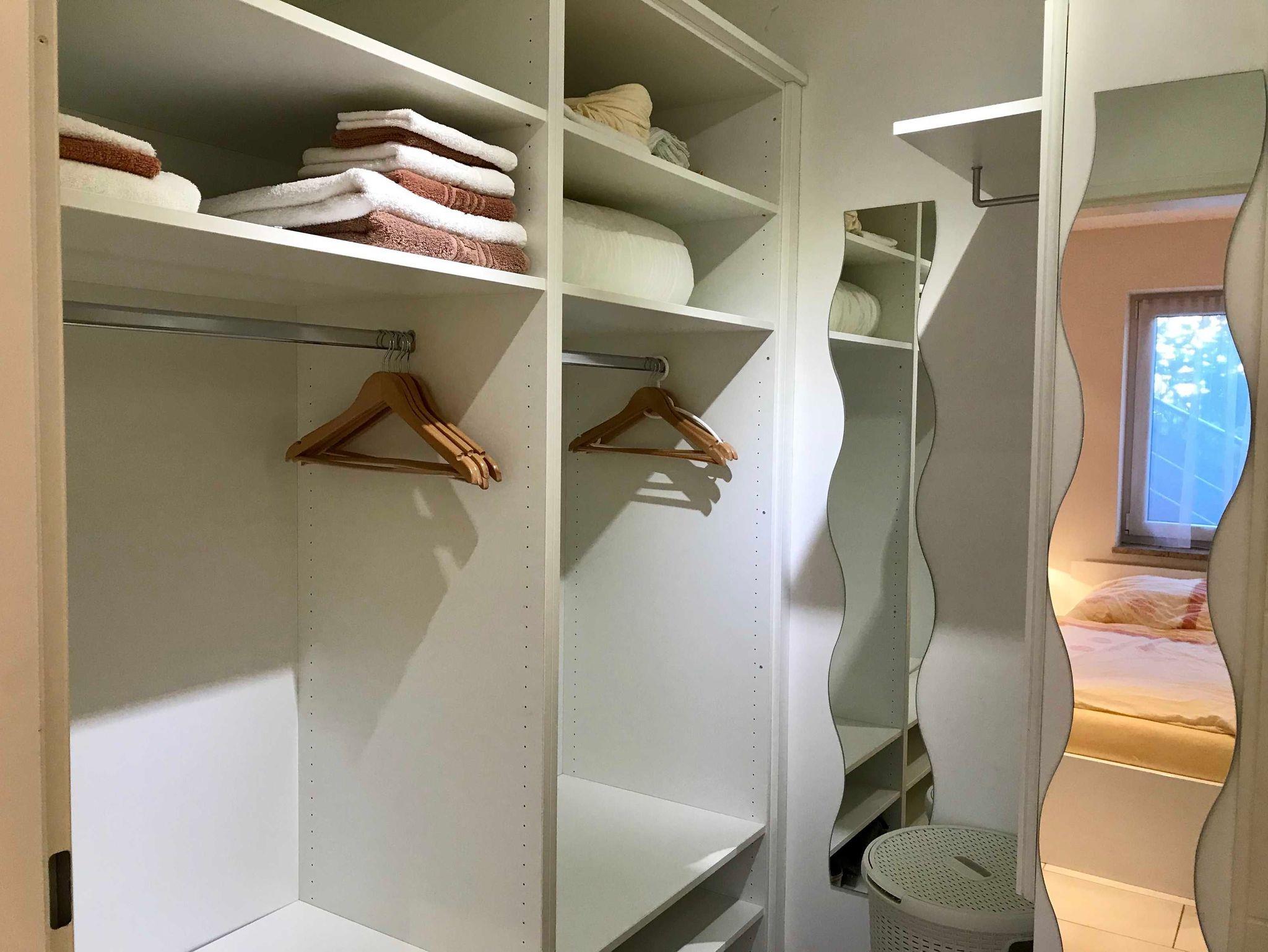 • 1 großzügiges Schlafzimmer mit Doppelbett und begehbarem Kleiderschrank