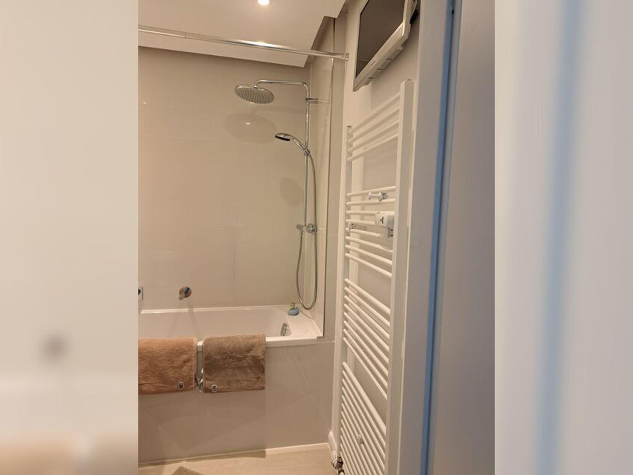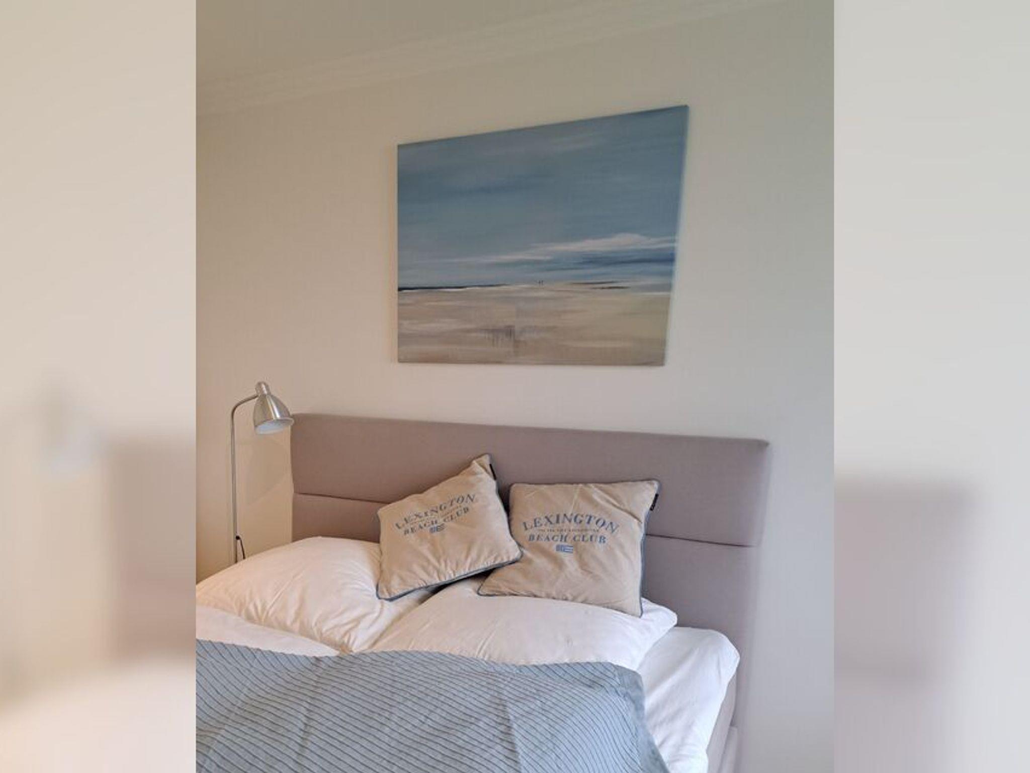Sie verfügt über ein Wohnzimmer, einer kleinen Küche, ein Schlafzimmer mit einem Boxspringbett (1,80 x 2,00 m, Bettdecken 1,55 x 2,20 m), ein Duschbad und einem Balkon.