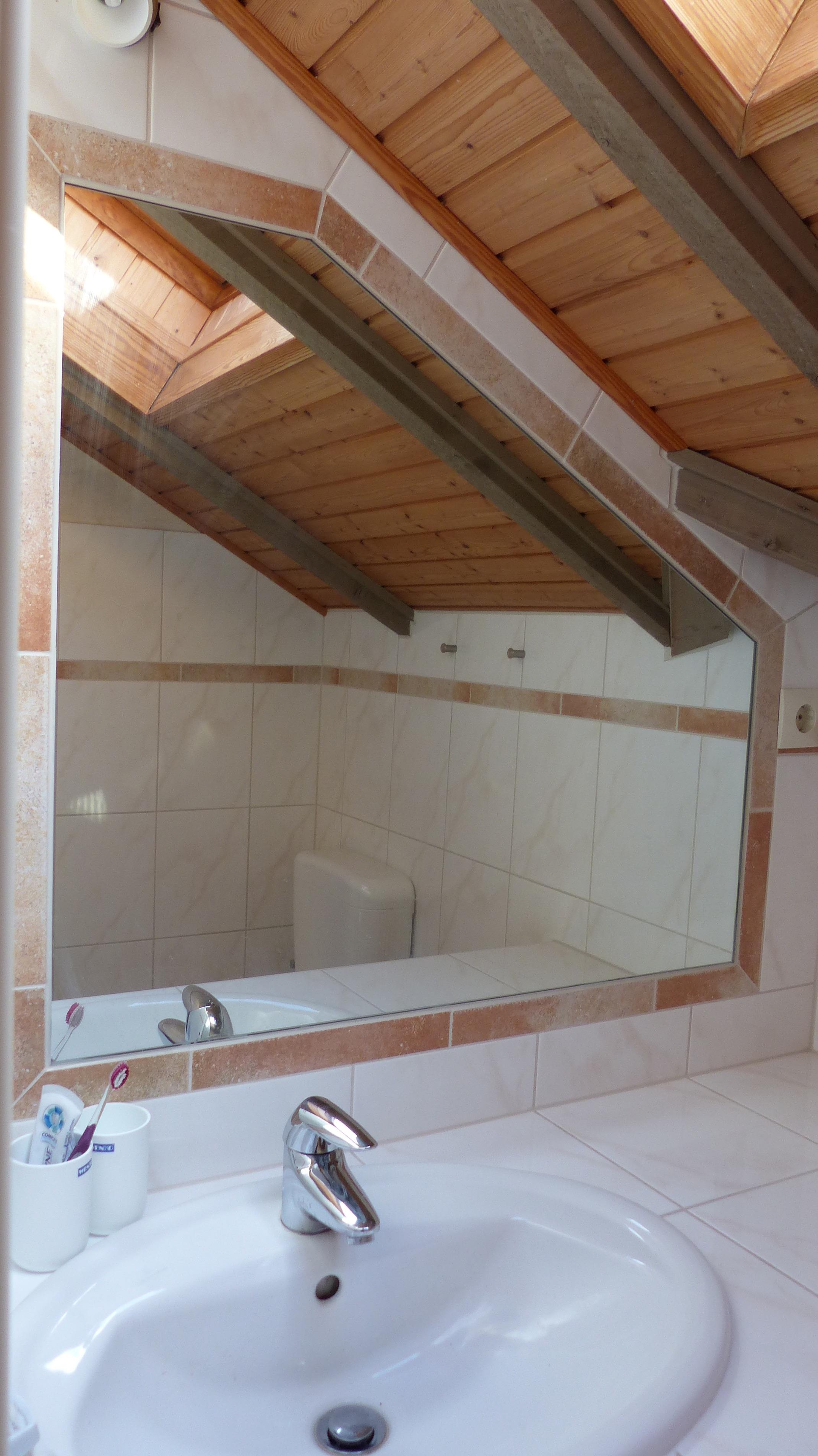 Das moderne Tageslichtbad ist mit einer großzügigen Dusche, einem Waschbecken und einem WC ausgestattet. Handtuchhalter, große Spiegel und reichlich Ablageflächen sorgen für höchsten Komfort.