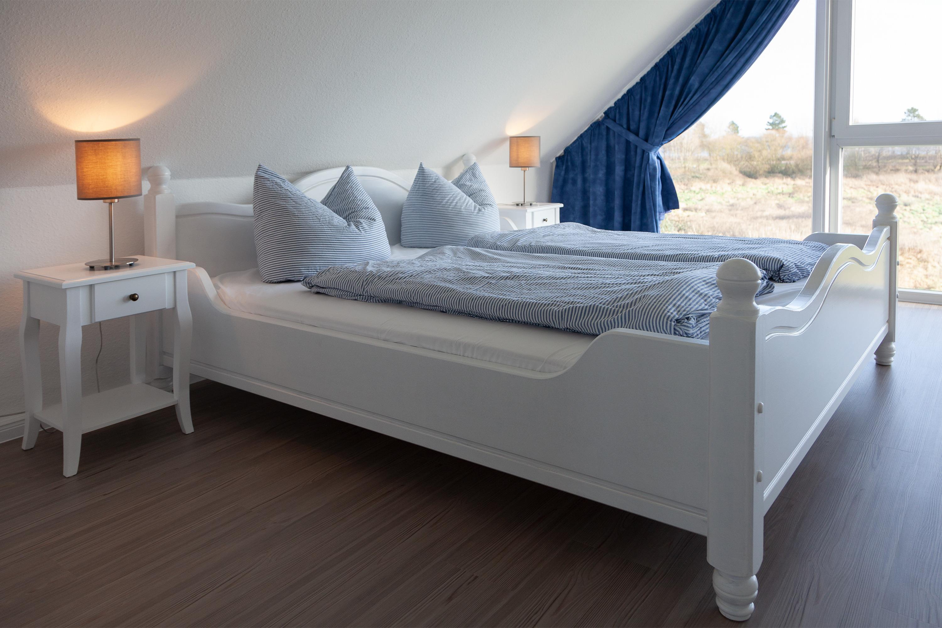 Das Ferienhaus verfügt über vier geschmackvoll eingerichtete Schlafzimmer: ein gemütliches Schlafzimmer mit Doppelbett, ein weiteres mit zwei Einzelbetten und zwei Schlafzimmer mit komfortablen Boxspringbetten (180 x 200 cm und 140 x 200 cm). Zwei moderne Tageslichtbäder, eines mit Dusche und eines mit einer luxuriösen Eckbadewanne, sorgen für zusätzlichen Komfort und Entspannung. Praktische Annehmlichkeiten wie eine Waschmaschine und ein Trockner runden das Gesamtbild ab.