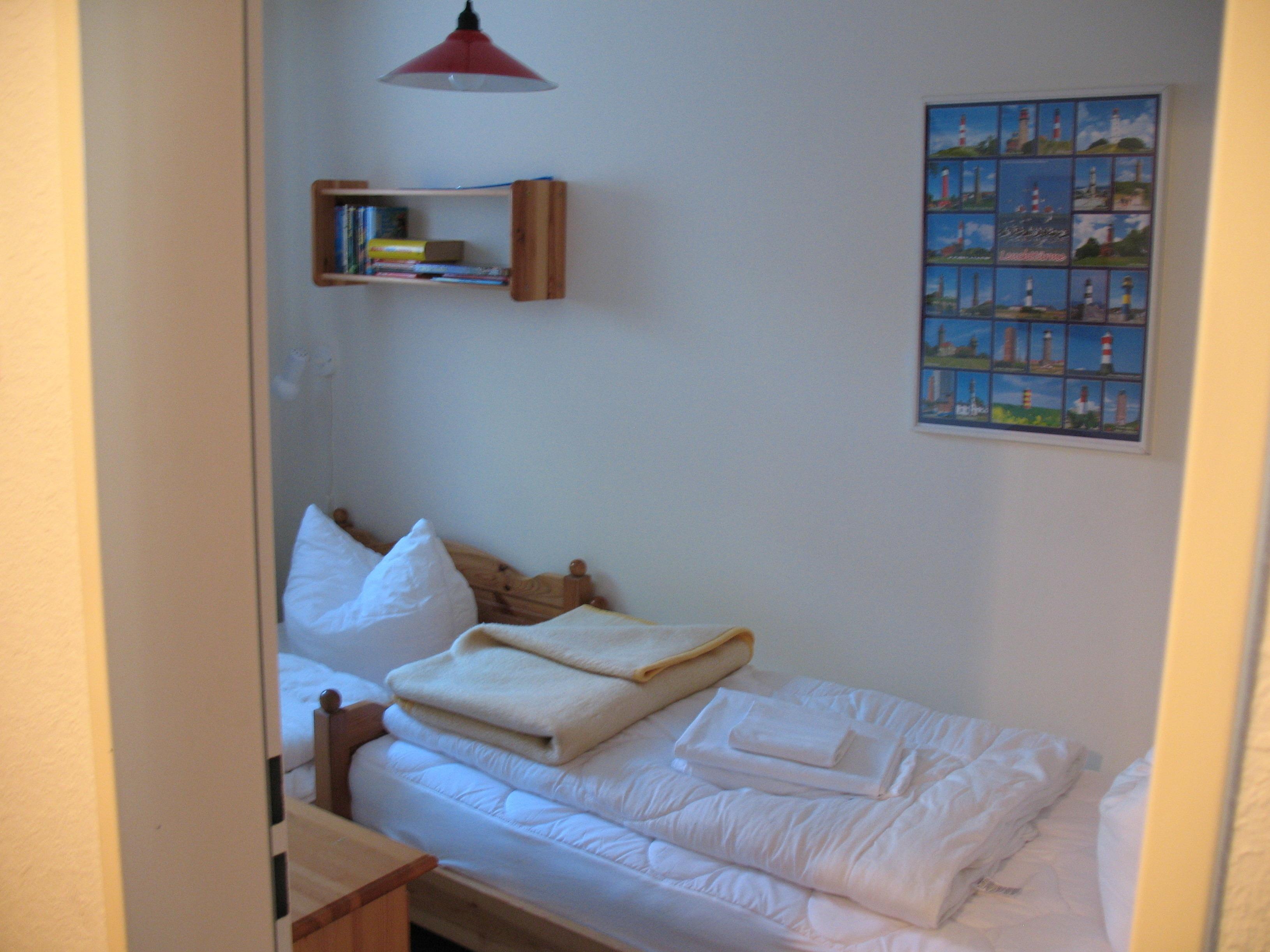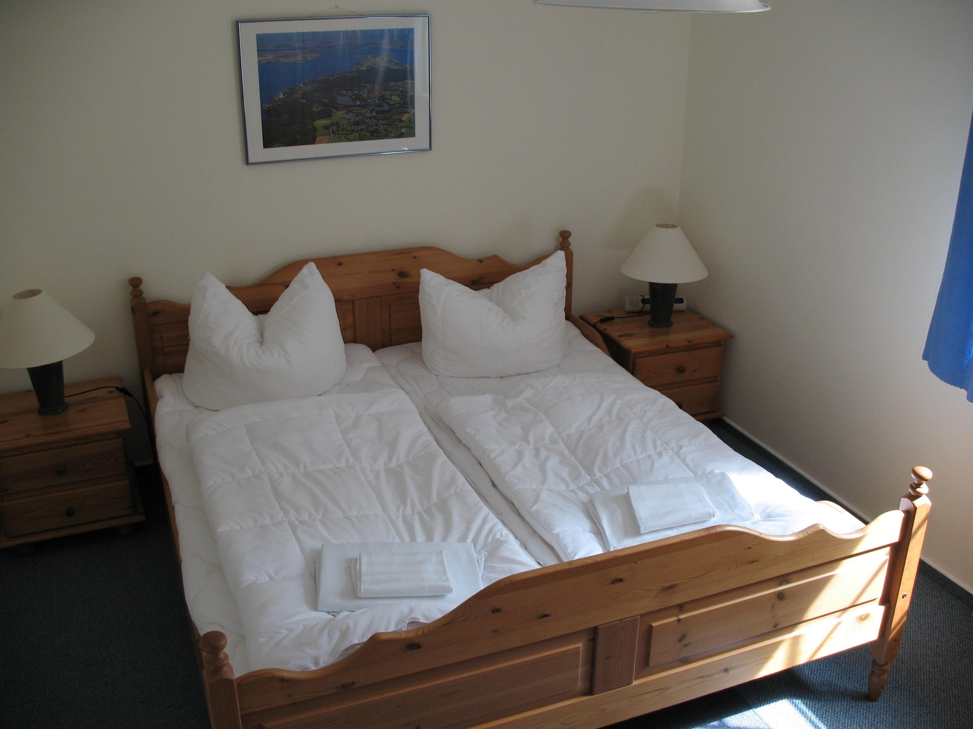 Im Untergeschoss befinden sich die beiden Schlafzimmer, die erholsame Nächte garantieren. Das erste Schlafzimmer ist mit einem komfortablen Doppelbett ausgestattet, das zweite mit zwei Einzelbetten. Beide Zimmer sind geschmackvoll und funktional eingerichtet, mit ausreichend Stauraum für Ihre Kleidung und persönlichen Gegenstände. Das Doppelbett bietet Platz für Paare, während die Einzelbetten auch für Freunde oder Kinder ideal sind. Zudem stehen Ihnen auf Anfrage ein Kinderbett und ein Hochstuhl zur Verfügung, sodass die Ferienwohnung auch für Familien mit kleinen Kindern bestens geeignet ist.