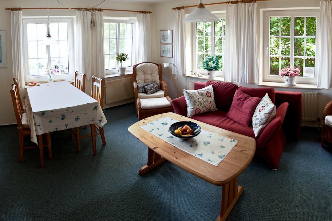 Im Erdgeschoss erwartet Sie ein heller, gemütlicher Wohnbereich, der zum Verweilen und Entspannen einlädt. Die moderne Einrichtung mit einer bequemen Couch, Sesseln und einem Esstisch sorgt für eine einladende Atmosphäre. Hier können Sie nicht nur zusammen essen, sondern auch in Ruhe ein Buch lesen oder einfach den herrlichen Blick auf das Wasser genießen. Der Wohnbereich ist mit einem Fernseher und einem DVD-Player ausgestattet, sodass auch an regnerischen Tagen für Unterhaltung gesorgt ist. Eine Bluetooth-Box bietet zusätzlich die Möglichkeit, Ihre eigene Musik zu hören und den Raum nach Belieben zu gestalten.