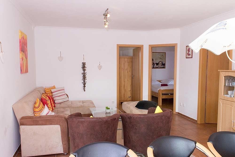 In der modernen Einbauküche finden Sie alles, was Sie für die Zubereitung Ihrer Mahlzeiten benötigen – ein Ceranfeld, Backofen, Mikrowelle, Kühl- und Gefrierkombination sowie eine Geschirrspülmaschine. Auch für die Zubereitung von Kaffee und Snacks stehen Ihnen eine Kaffeemaschine, eine Senseo-Pad-Maschine, ein Wasserkocher, ein Handrührgerät, ein Eierkocher und ein Toaster zur Verfügung. So können Sie sich ganz entspannt kulinarisch verwöhnen, ohne auf modernen Komfort verzichten zu müssen. Das großzügige Wohnzimmer bietet einen einladenden Raum zum Entspannen, mit einem 80 cm großen LCD-TV, Satellitenempfang, Blu-ray/DVD-Player und einem Stereo-Booster-Radio mit USB, Bluetooth, CD und AUX. Der große, ausziehbare Esstisch bietet Platz für gemeinsame Mahlzeiten oder gesellige Abende.