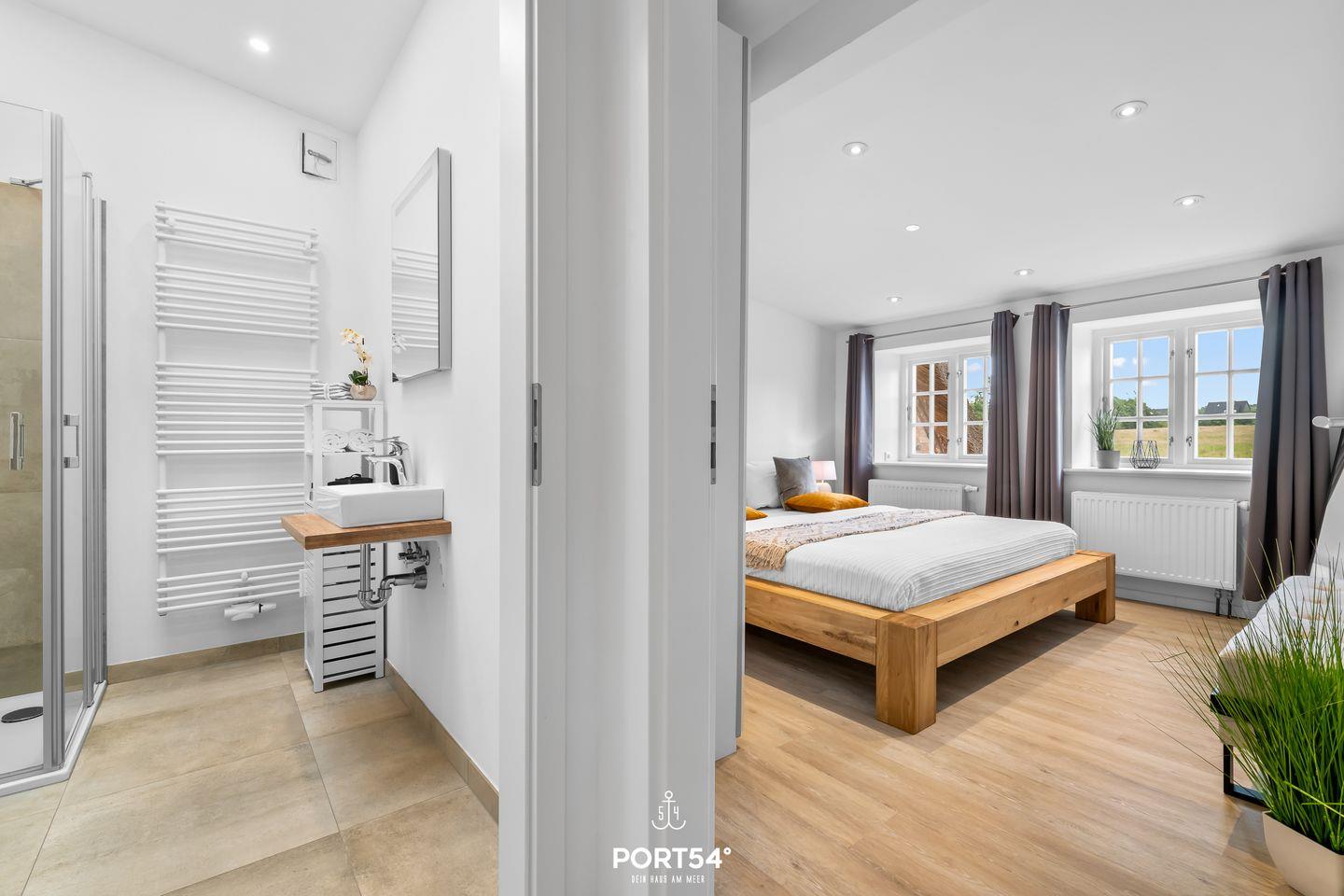 Die Unterkunft verfügt über zwei geschmackvoll eingerichtete Schlafzimmer, die Ihnen erholsame Nächte ermöglichen. Die zwei Schlafzimmer bieten ein kleines Doppelbett (160x200cm) und ein Doppelbett (180x200cm). Genießen Sie die Annehmlichkeiten von zwei Badezimmern, darunter eine bodengleiche Dusche und eine Badewanne, die perfekte Möglichkeiten zur Entspannung nach einem Tag voller Erlebnisse bieten. Die offene Küche, die nahtlos in das Wohnzimmer übergeht, ist mit modernen Geräten ausgestattet, darunter ein Herd, ein Backofen, eine Spülmaschine und eine Mikrowelle, damit Sie für Ihre Lieben köstliche Mahlzeiten zubereiten können. Das Gartenzimmer mit einem gemütlichen Sofa bieten eine zusätzliche Schlafmöglichkeit.