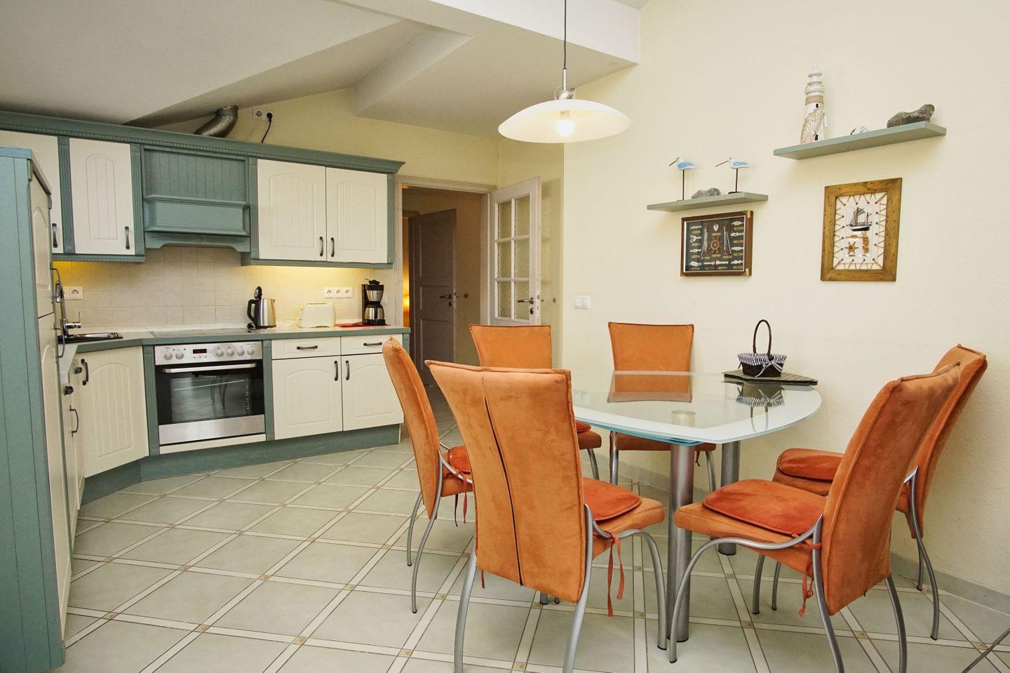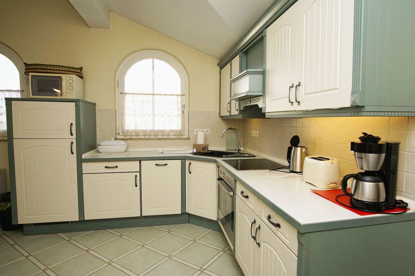 KÜCHE // offene Küche, 4-Platten Ceranherd, Spülmaschine, Kühlschrank mit Gefrierfach, Backofen, Toaster, Wasserkocher, Kaffeemaschine, reichlich Besteck, Geschirr und Küchenutensilien ++