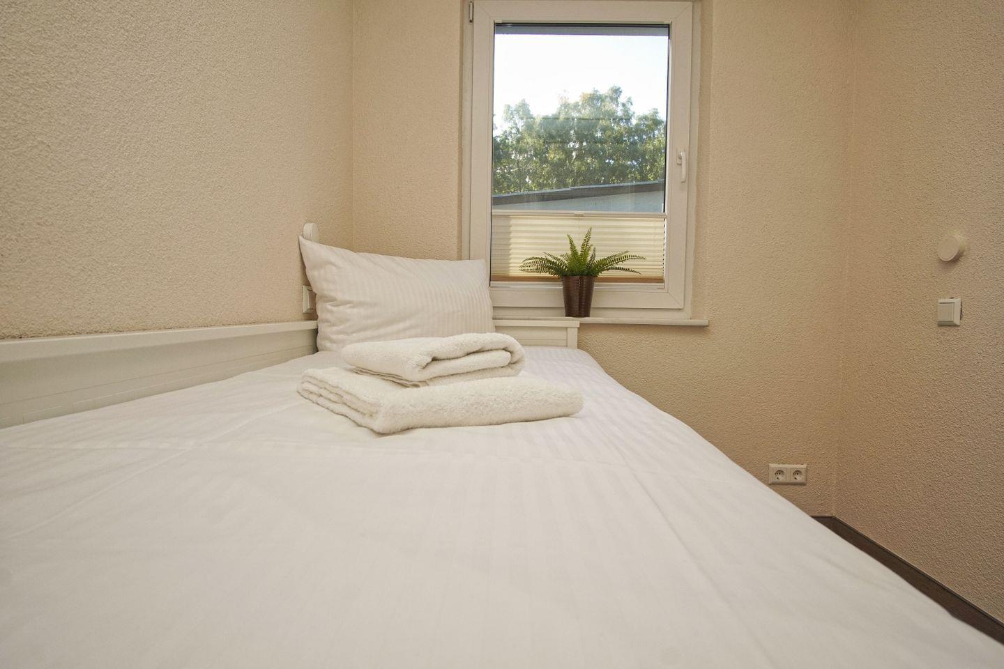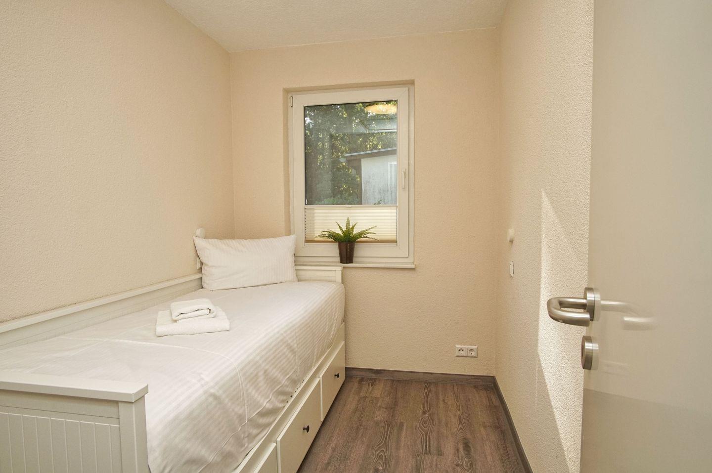 SCHLAFEN // ein bequemes Doppelbett im Wohnbereich, ein separates Schlafzimmer mit Einzelbett ++