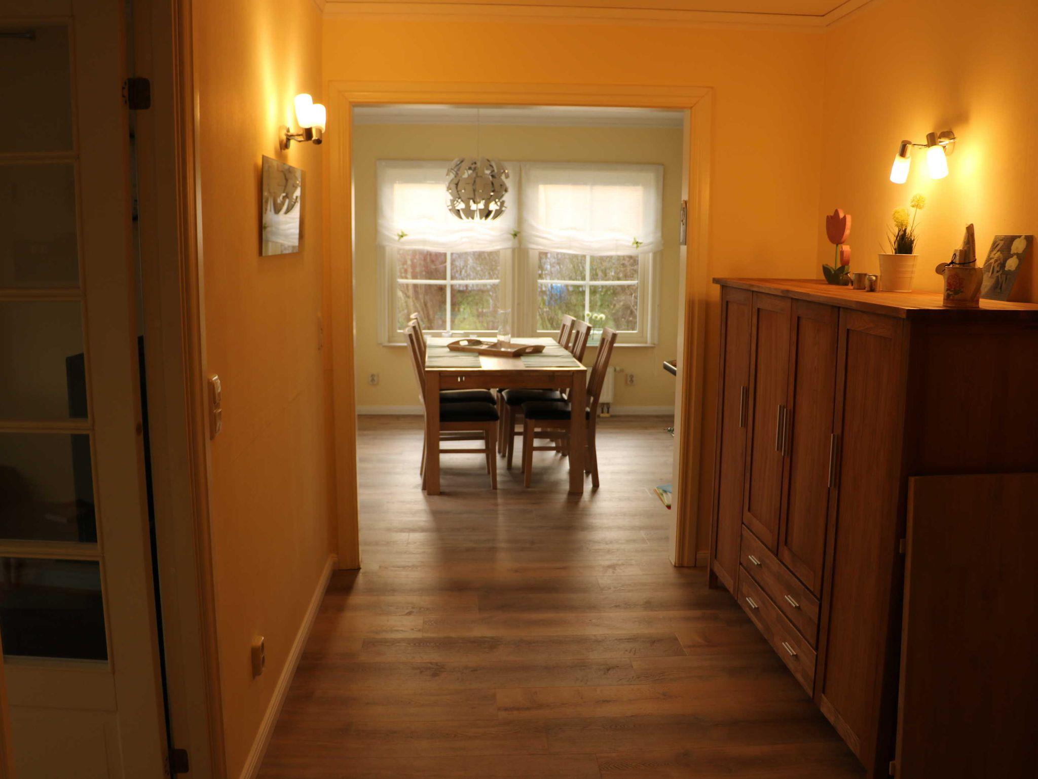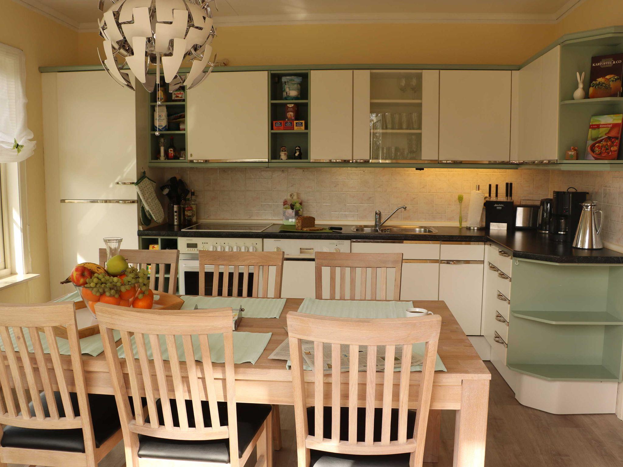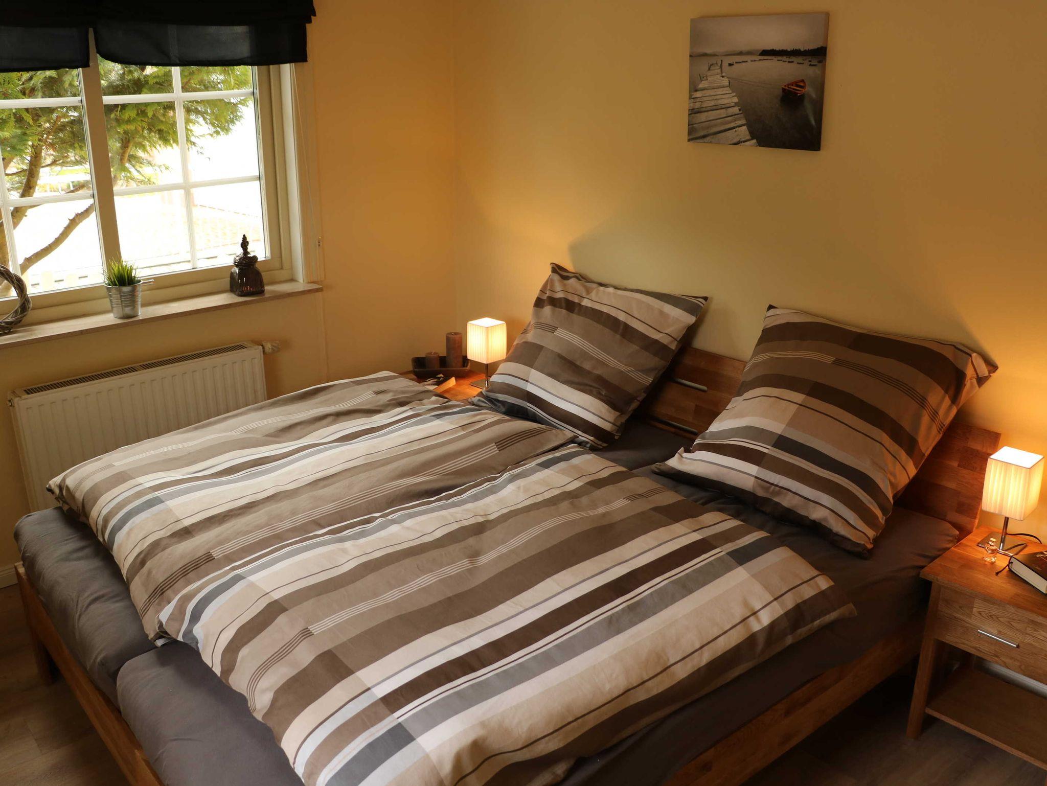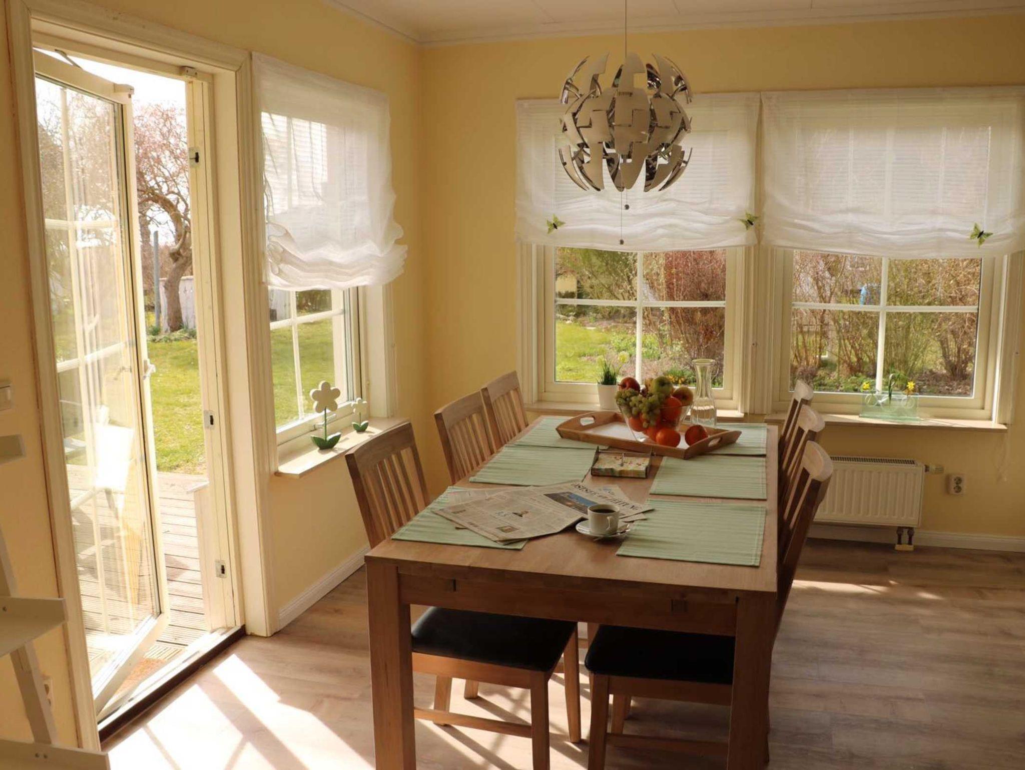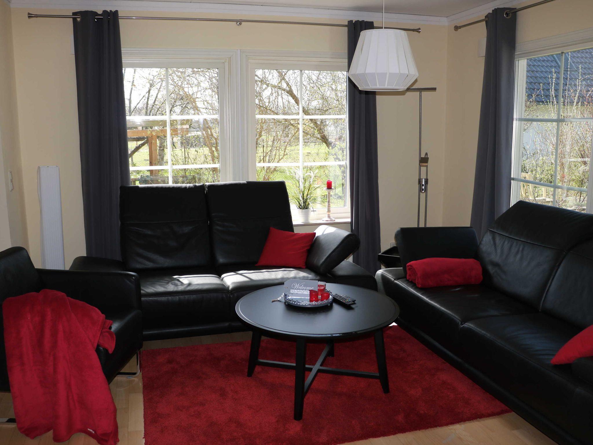 Ferienhaus für bis zu 6 Personen. ca. 118qm. Großer Wohnraum mit Kaminofen und Terrasse, komplett eingerichtete Küche mit Esstisch. 3 Schlafzimmer (2 mit Doppelbett, 1 mit Einzelbetten). Fußböden mit Parkett, Vinylboden ausgelegt. Zwei Bäder - eins mit Dusche, eins mit Badewanne. Duschbad komplett saniert in 2020!