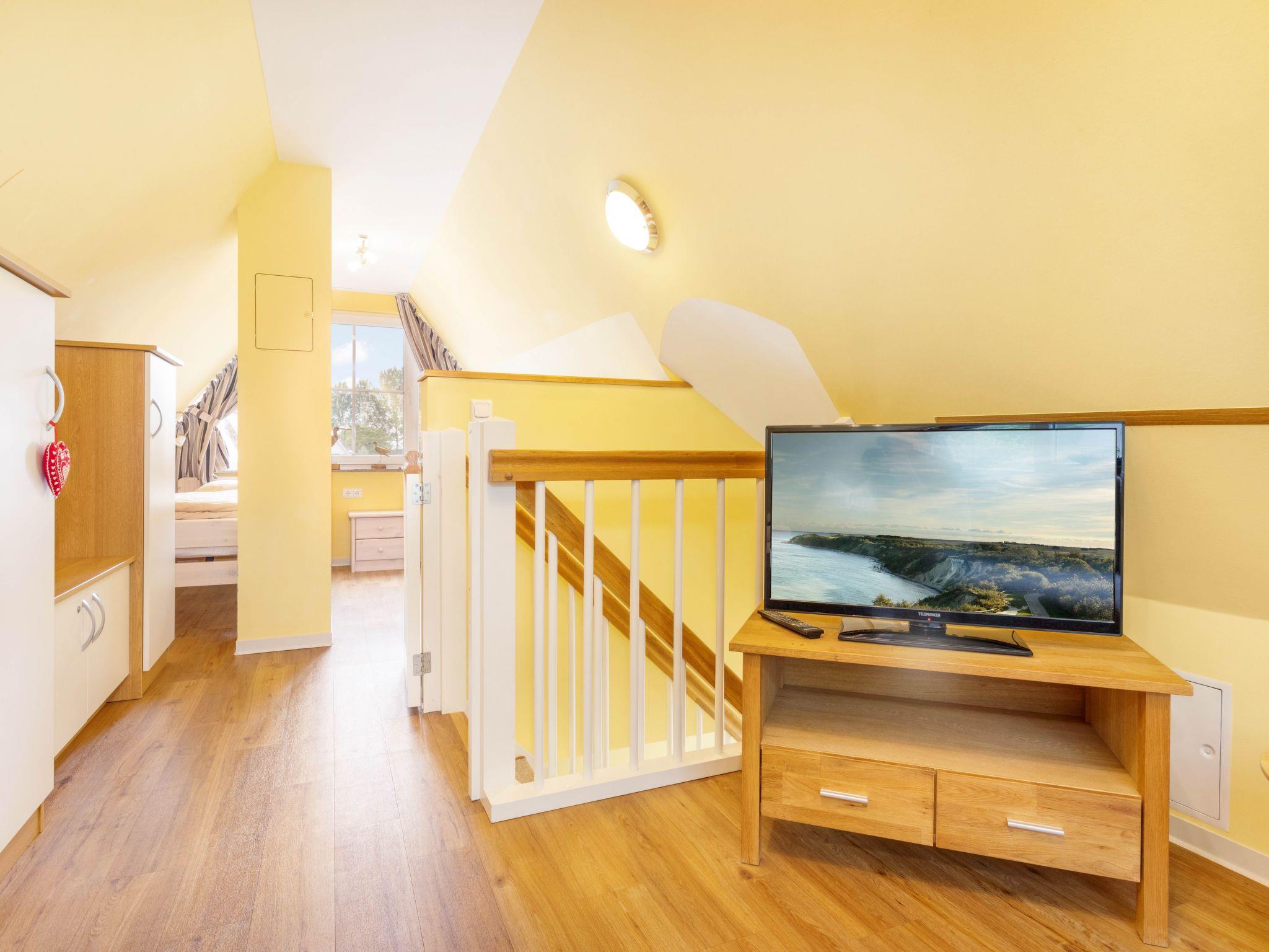 You will find shops and restaurants within walking distance. The house also offers an ideal starting point for cycling tours, hikes through sparse forest or along the Bodden coast of Rügen. The diverse landscape offers a variety of experiences. The Schaabe with its uniquely marvellous sandy beach and the dreamlike pine forests is one of the most beautiful on Rügen. Glowe itself offers many opportunities to play, a surfing and sailing school, a new waterfront promenade and a charming little harbour. To make you and your children feel right at home on Rügen, you will also find a playground for climbing and running around directly in the holiday home complex.