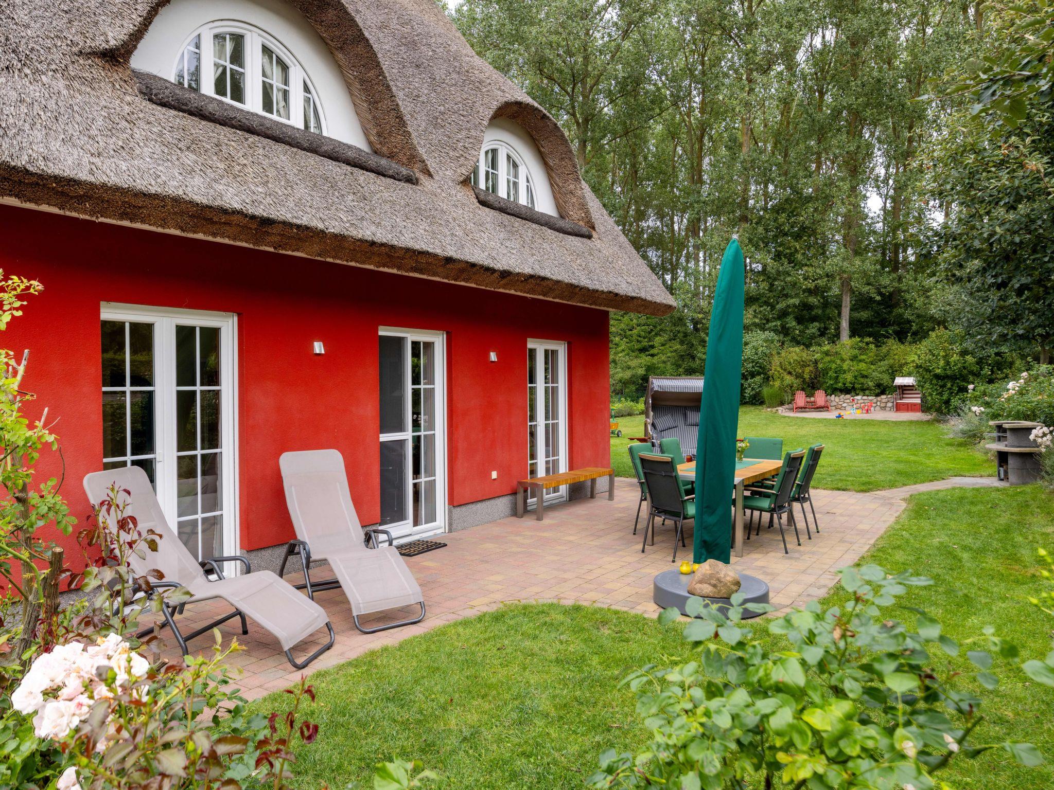 The pretty, enclosed garden offers plenty of space to relax and play or to catch the last rays of sunshine in the beach chair in front of the house. 4 sunbeds, 2 beach chairs and garden furniture for eight people are available for you. A garden barbecue is available for barbecues on warm summer evenings and you can securely lock your bikes in the garden shed or park them in the bike rack in front of the house. The landlords look forward to welcoming you. Relax under the romantic thatched roof, away from the hustle and bustle and yet close to the action in wonderful peace and quiet.