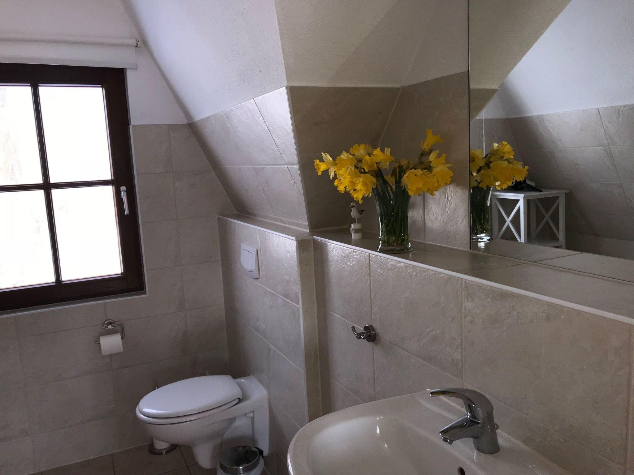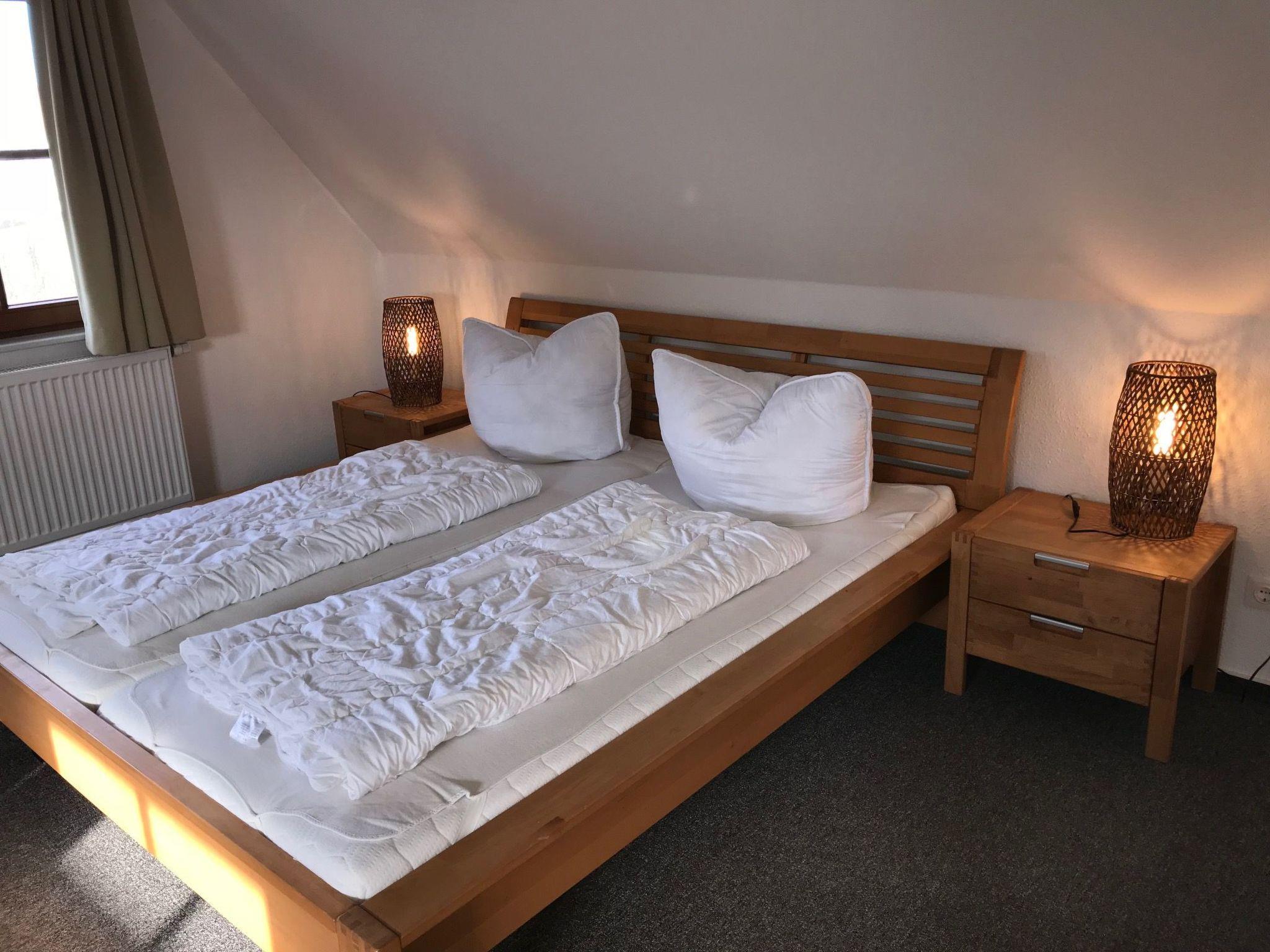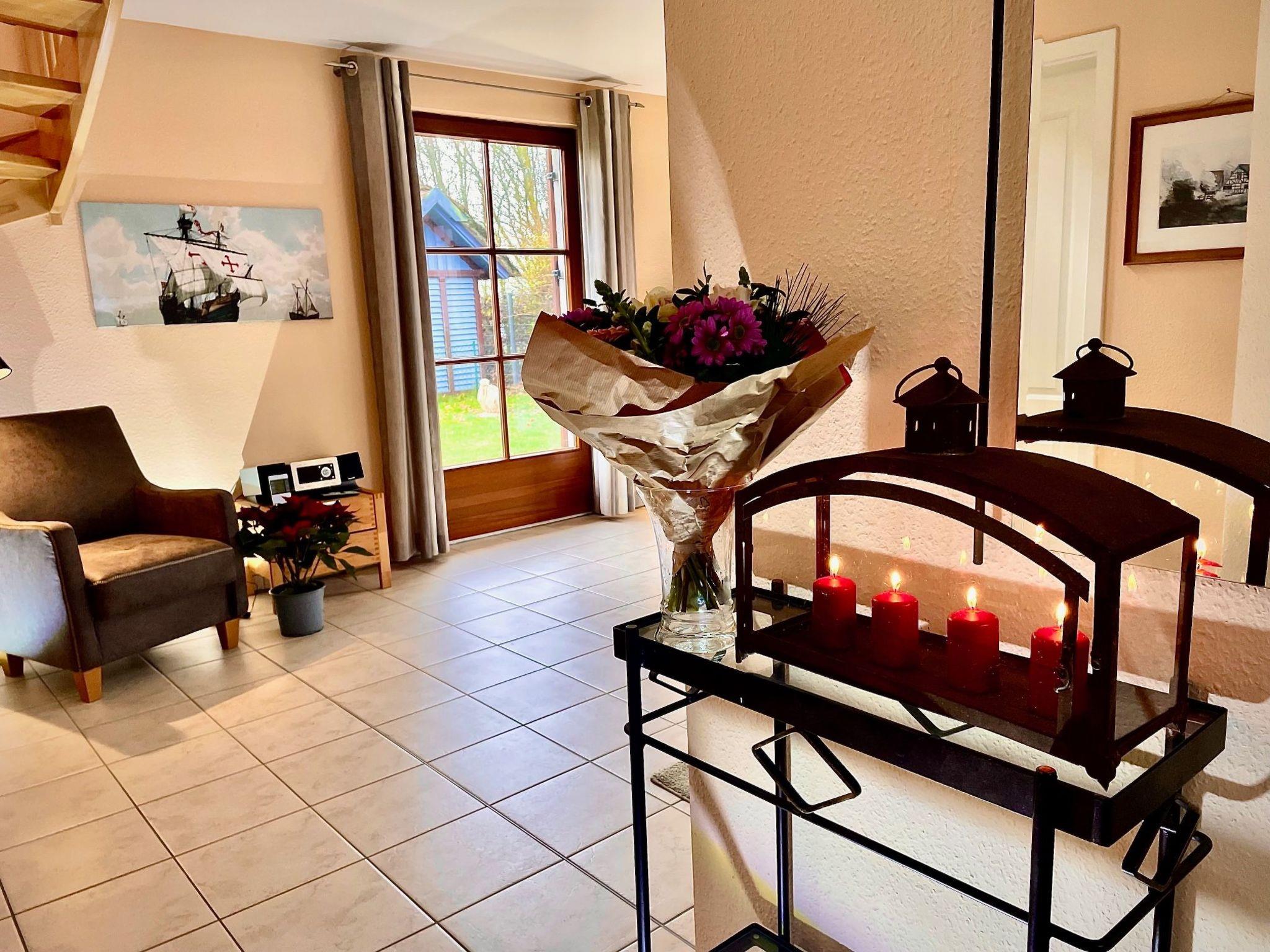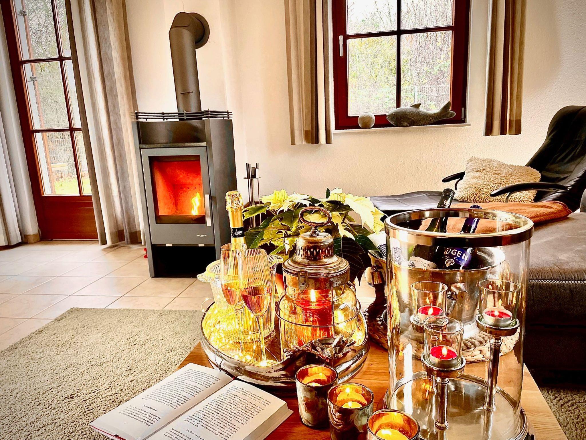 Inside the house you will find two cosy bedrooms, each furnished with a comfortable double bed, and two bathrooms offering all the amenities you need for a relaxing stay. The partial underfloor heating ensures cosy warmth even in cooler months. In the living area, a cosy sofa set invites you to linger, while the fireplace provides an extra dose of cosiness on chilly evenings. For everyday convenience, a washing machine, dishwasher, coffee machine and kettle are available for your exclusive use. The washing machine is equipped with a coin-operated machine.