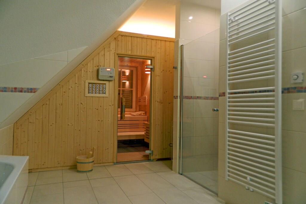 Strandvilla "La Vie en Rose" Unser mit viel Liebe zum Detail und im Landhausstil eingerichtetes Reetdachhaus bietet zu jeder Jahreszeit Erholung und Entspannung pur. Dabei haben wir sehr großen Wert auf eine helle und freundliche Einrichtung sowie eine besonders hochwertige Ausstattung gelegt. Das Haus liegt nur wenige Gehminuten von einem der schönsten und längsten Strände Rügens entfernt, der Schaabe. Erdgeschoss: Großzügiger und sonniger Wohn-Essbereich mit drei großen Terrassentüren, Blick in Garten und Wald, Kaminofen mit großer 180-Grad-Panoramascheibe, gemütliches Sofa mit Sesseln und Hocker, TV/Sat (Flatscreen) für ein echtes Kino-Erlebnis, Stereoanlage mit Radio/CD-Player. Offene und komplett ausgestattete Landhaus-Küche mit 4-Plattenherd (Ceranfeld), Backofen, Kühlschrank mit Gefrierfach, Geschirrspüler, Mikrowelle, Dunstabzug (Abluft), zwei Kaffeemaschinen (Filter und Pads/Senseo), Wasserkocher, Toaster, Stabmixer und Rührgerät, Geschirr von Villeroy & Boch. 1. Schlafzimmer im EG mit Doppelbett (180cm x 200cm), großer Kleiderschrank und eigenem Terrassenausgang. Schönes Badezimmer mit WC, bodentiefe Dusche. Wirtschaftsraum mit Waschmaschine und Trockner. Obergeschoss: 2. Schlafzimmer mit Doppelbett (160cm x 200cm) mit Kleiderschrank, Kommode, gemütlicher Lesesessel in Gaube, TV (Flat Screen) und integriertem DVD-Player. 3. Schlafzimmer mit französischem Doppelbett (140cm x 200cm), Schreibtisch am Fenster (Gaube) und Kommode. 4. Schlafzimmer mit 2 Einzelbetten (100cm x 200cm), Kommode und TV (Flatscreen). Im Flur großer Kleiderschrank. Großzügiges lichtdurchflutetes Badezimmer mit großer Sauna (Fenster zum Rausschauen), WC, Duo-Badewanne unter hoher Gaube, bodentiefe Dusche, großer Handtuchtrockner und Fön. Alle Schlafzimmer und das Bad haben Garten- und/oder Waldblick. Außenanlagen: Weitläufige Terrasse (ca. 87 qm) nach Süd, Ost und West mit schönem Waldblick, ideale Lage zum Sonnenverlauf von Sonnenaufgang bis Sonnenuntergang, großzügige Rasenfläche rund ums Haus, Sonnen- und Schattenplätze unter hohen Bäumen, hochwertige Gartenmöbel und großer Gartentisch (8 Personen), Strandkorb, Sonnenliegen, Baum-Hängematte, separate Grill-Insel und optionale Baumbeleuchtung am Abend.