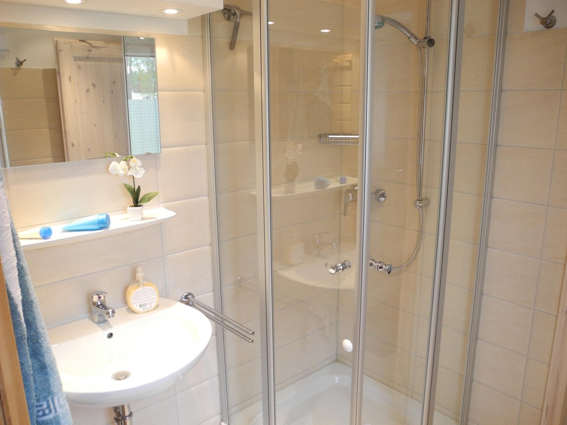 Ebenfalls im EG befindet sich ein Bad mit WC, Dusche und Infrarotsauna. Alle Räume im EG haben Fußbodenheizung.