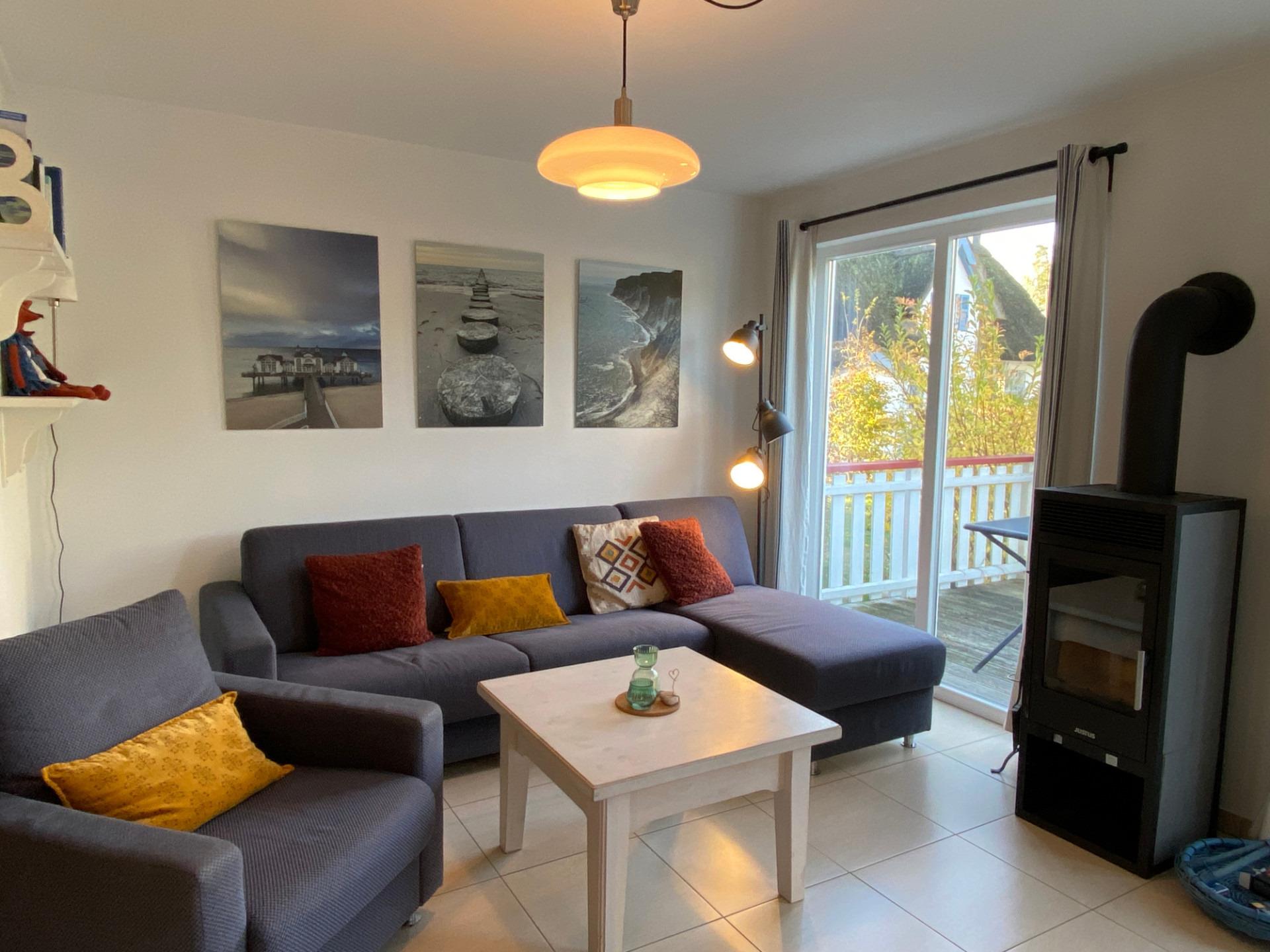 Im Erdgeschoß befindet sich der helle Wohnbereich mit Sitzecke inkl. Schlafsofa, ein Kaminofen, ein Smart-TV, ein großzügiger Essbereich und eine voll ausgestattete Küche.