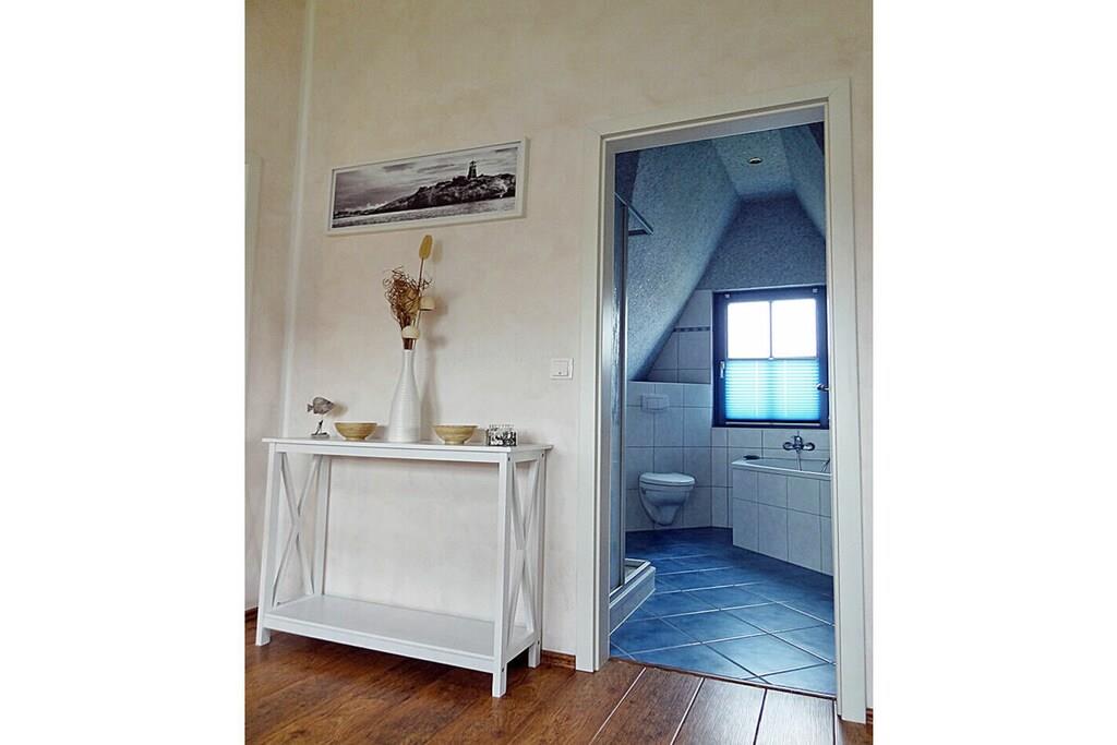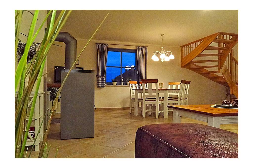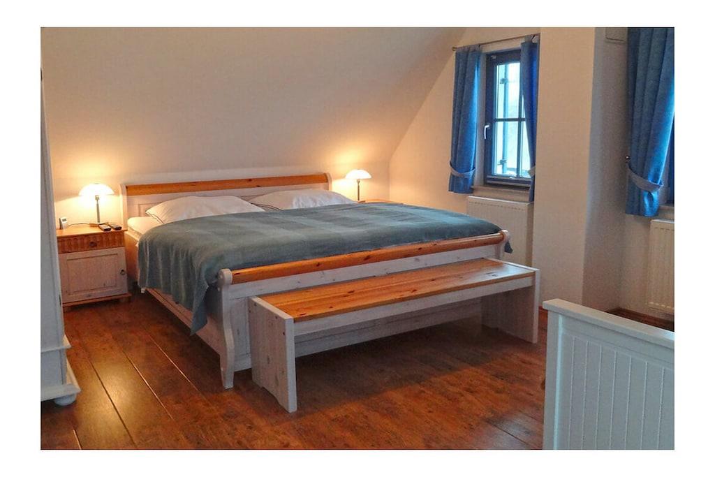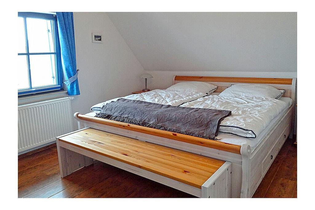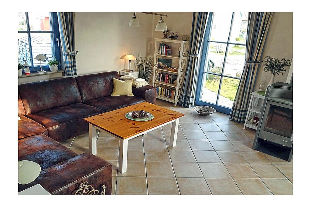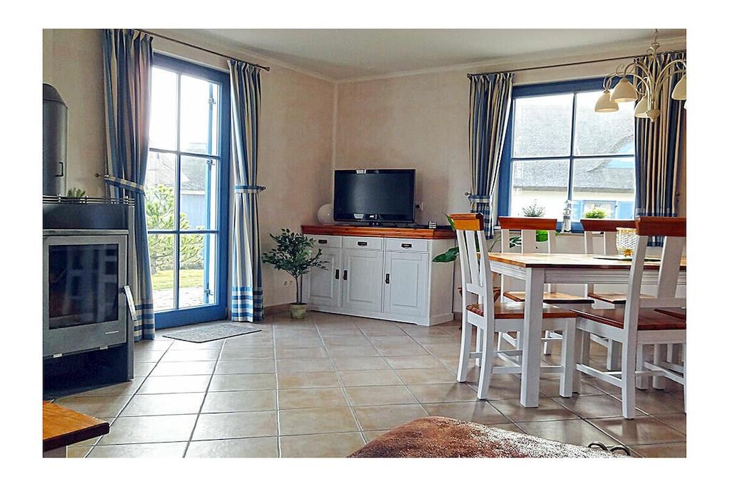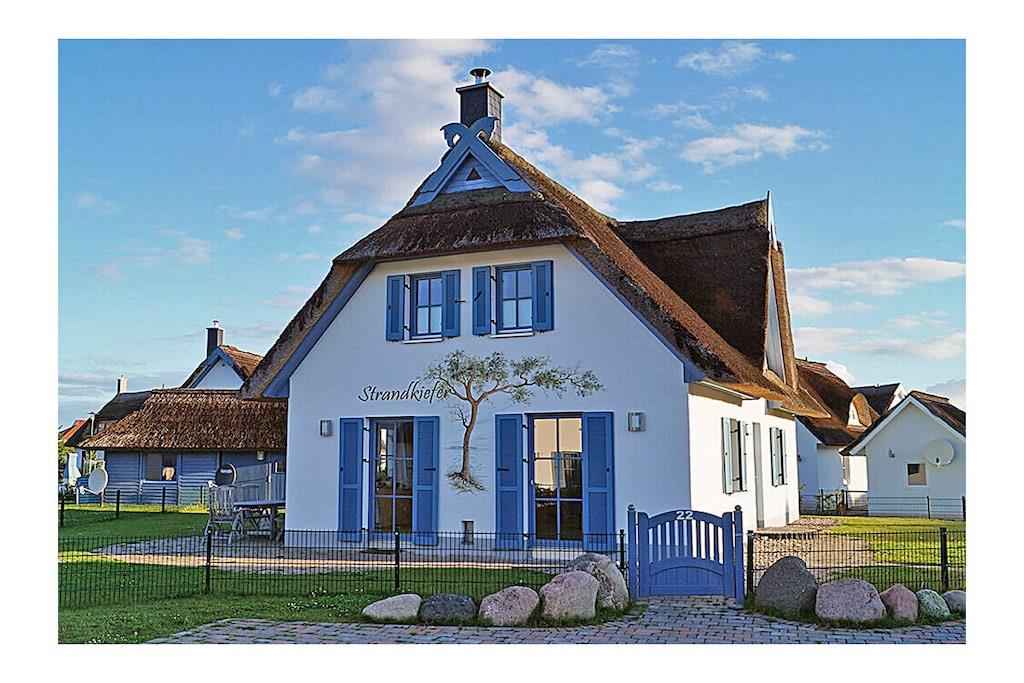 Erdgeschoss: großzügiger Wohn-, Essbereich mit Kamin und Fußbodenheizung, gemütliche Couchlandschaft und Sessel, TV-Sat (Flatscreen), Musikanlage/CD-Player, DVD-Player, Blu-ray Player, Internet (WLAN), Gesellschaftsspiele und Bücher für gemütliche Abende, komplett ausgestattete hochwertige Einbauküche mit 4-Plattenherd (Ceran), Backofen, Kühlschrank mit kleinem Gefrierfach, Geschirrspüler, Mikrowelle und diversen Elektrogeräten, TV, Badezimmer mit Dusche/WC, Sauna (kostenpflichtig: 1,00 Euro/Stunde), Hauswirtschaftsraum mit Waschmaschine, Wäscheständer und Staubsauger Obergeschoss: 1. Schlafzimmer mit einem Doppelbett (getrennte Matratzen jeweils 90×200 cm), einem Einzelbett, Kleiderschrank und TV-Sat (Flatscreen), Blu-ray Player, 2. Schlafzimmer mit einem Doppelbett (getrennte Matratzen jeweils 90×200 cm) und zusätzlichem Einzelbett, Kleiderschrank und TV-Sat (Flatscreen), Blu-ray Player, großes Badezimmer mit Badewanne, Dusche und WC, Insektenschutz an den Fenstern Außenbereich: Terrasse mit gemütlichen Gartenmöbel (6 Gartenstühle und 2 Liegestühle) und großem Sonnenschirm, ein Strandkorb lädt zum Relaxen ein, Grillmöglichkeit besteht(Grill nicht vorhanden), 2 PKW Stellplätze direkt am Objekt, überdachte Fahrradabstellmöglichkeiten (Gartenhaus) vorhanden Besuchen-Erleben-Genießen- Sie Ihren Urlaub im Reethaus „Strandkiefer“ Das gemütliche Ferienhaus „Strandkiefer“ befindet sich im Erholungsort Glowe in idealer Strandlage. Der naturbelassene Ostseestrand und auch der Yachthafen sowie der wunderschöne kilometerlange weiße Sandstrand sind nur wenige Gehminuten von Ihrem Feriendomizil entfernt. Das komplett umzäunte Grundstück umfasst ca. 575 qm. Unser Ferienhaus „Strandkiefer“ mit ca. 100 qm bietet alles, was sich das Urlauberherz wünscht. Angefangen bei der gemütlichen Couchlandschaft mit Kamin, eine sehr gut ausgestattete Küche finden Sie im Erdgeschoss weiterhin noch eine klassische Aufgusssauna mit eigener Dusche. Im Obergeschoss befinden sich die beiden Schlafzimmer mit TV und ein großes Badezimmer mit Dusche und Badewanne. Jede Menge Spaß und Abenteuer für die Kleinen, bietet der neu angelegte Spielplatz im Kurpark. Nach einem Ausflug zu einer der vielen Sehenswürdigkeiten der Insel Rügen, können Sie die Terrasse mit Garten-, Liegestühlen und einem Strandkorb (nur saisonal vorhanden) nutzen um den Abend gemütlich ausklingen zu lassen. Das Ferienhaus „Strandkiefer“ ist ein Nichtraucherhaus. Einkaufsmöglichkeiten, Bäcker, Restaurants und ein Getränkehandel befinden sich in unmittelbarer Nähe. Optimale Rad- und Wandermöglichkeiten um die Insel zu erkunden runden das Angebot ab. Bei uns sind Hunde willkommen! (Gebühr Euro 5,-/ pro Hund/ pro Nacht).