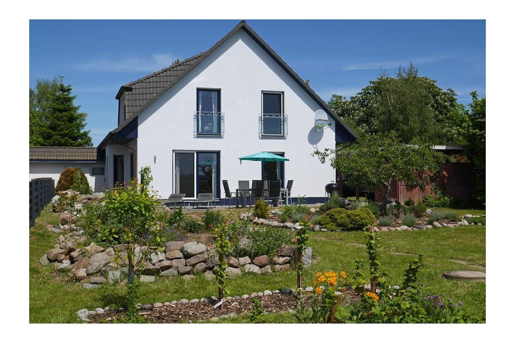 Erdgeschoss: großzügiger Wohn- & Essbereich mit Kamin und gemütlicher Couchlandschaft, TV/Sat (Flatscreen), DVD- Player, Radio/CD, großer Esstisch für 6 Personen im Lichtdurchfluteten Essbereich, geräumige Einbauküche im Landhausstil mit 4-Plattenherd (Ceranfeld), Backofen, Mikrowelle, Kühlschrank mit kleinem Gefrierfach, Geschirrspüler und diversen Elektrogeräten, Bad mit Dusche und WC, Hauswirtschaftsraum mit Waschmaschine und Wäscheständer. Obergeschoss: 1. Schlafzimmer mit einem Doppelbett (zwei getrennte Matratzen je 90x200cm) und Kleiderschrank, 2. Schlafzimmer mit zwei Einzelbetten (je 90x200cm), Kleiderschrank und kleiner Sitzgelegenheit, TV (Flatscreen), 3. Schlafzimmer mit zwei Einzelbetten (je 90x200cm), Kleiderschrank und kleine Sitzgelegenheit, geräumiges Badezimmer mit Badewanne, Dusche und WC. Große Terrasse mit Gartenmöbeln und zwei Sonnenliegen, Grillmöglichkeit besteht (Grill vorhanden) Urlaub im schönen Ferienhaus „Marisol“ Im romantischen und beschaulichen Fischerdorf Glowe liegt das Ferienhaus „Marisol“ in ruhiger, aber zentraler Lage. 1000qm großes Grundstück mit Fernblick zum großen Jasmunder Bodden, Nichtraucher, Waschmaschine vorhanden (ohne Gebühr), kostenfreies WLAN vorhanden, Insektenschutzgitter in jedem Raum, Fahrradabstellmöglichkeit vorhanden (Carport), 2 PKW-Stellplätze direkt am Haus, ein Kinderbett und ein Kinderhochstuhl vorhanden und kostenlos nutzbar, weiteres Kinderbett und Hochstuhl hinzubuchbar! Einkaufsmöglichkeiten, Bäcker und Restaurants in unmittelbarer Nähe, optimale Rad- und Wandermöglichkeiten, Haustiere aus Rücksicht auf Allergiker nicht gestattet
