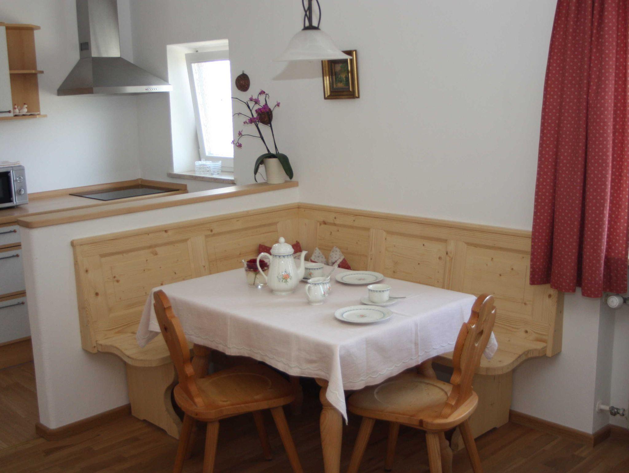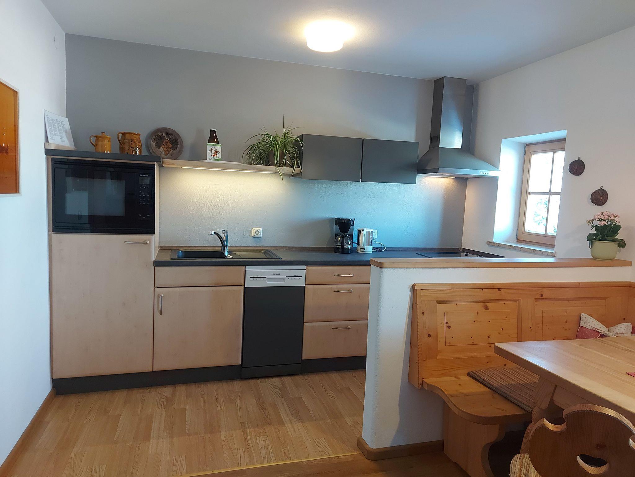 • Wohnküche mit kompletter Ausstattung und Eckbank mit Tisch.