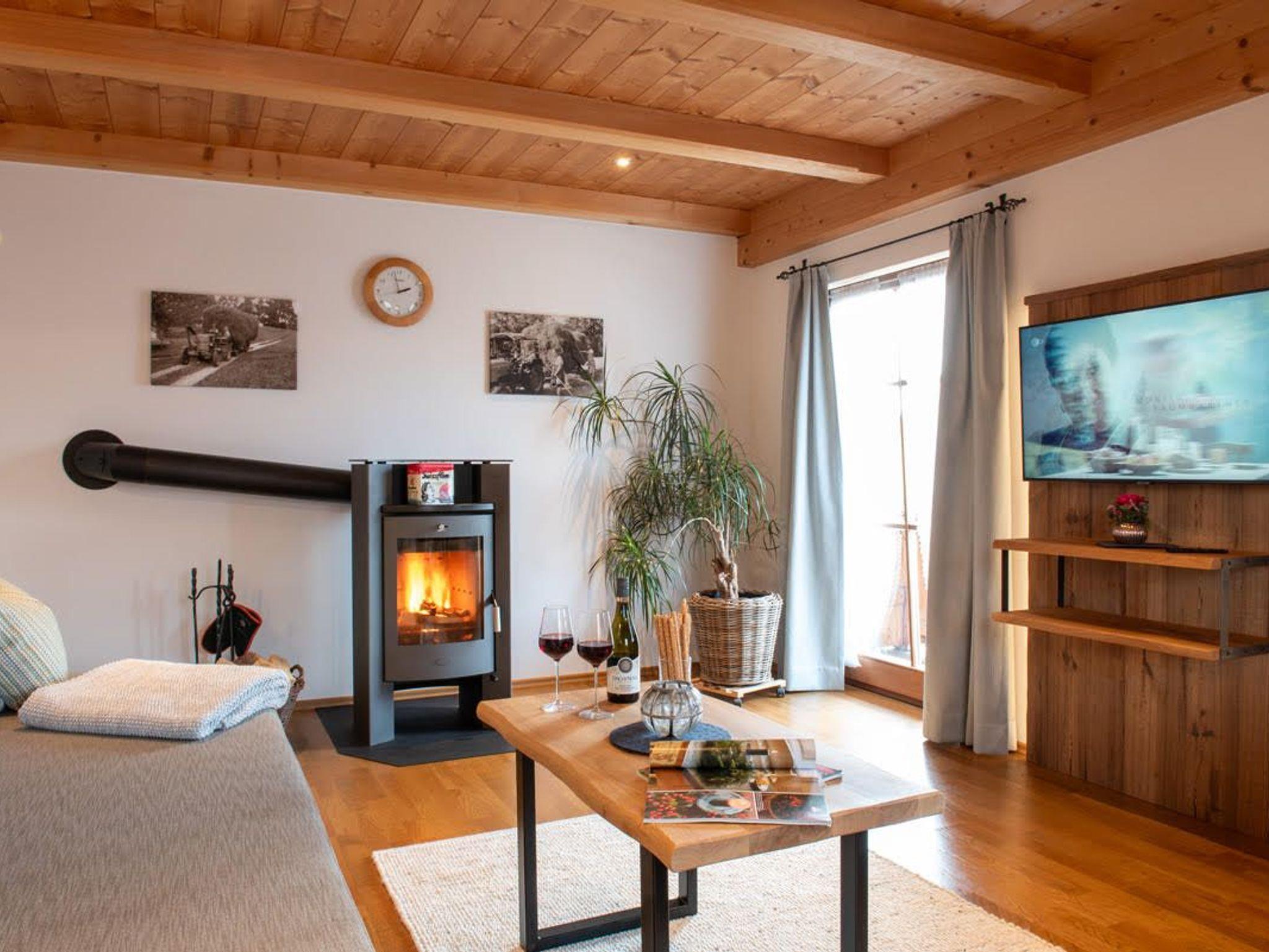 Unsere 4 Sterne Wohnung Spatzennest ist ca. 90 m² groß, hat einen Balkon auf dem Sie die Nachmittags- und Abendsonne genießen können und eine große Terrasse. die Wohnung wurde im Winter 2023/24 teilweise neu renoviert. Dabei entstand ein neues Badezimmer mit zwei Waschbecken und einer ebenerdig begehbaren Dusche. Außerdem wurde das Wohnzimmer erneuert. Darin befindet sich ein großzügiges Gflagg, eine Essecke und ein Kaminofen. Stellen sie sich vor, draussen ist es kalt, drinnen im Kaminofen lodert das Feuer und das Holz knistert, dann ein Buch zur Hand; das ist Urlaub!